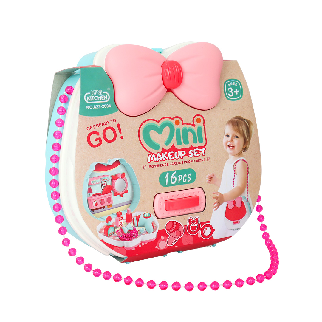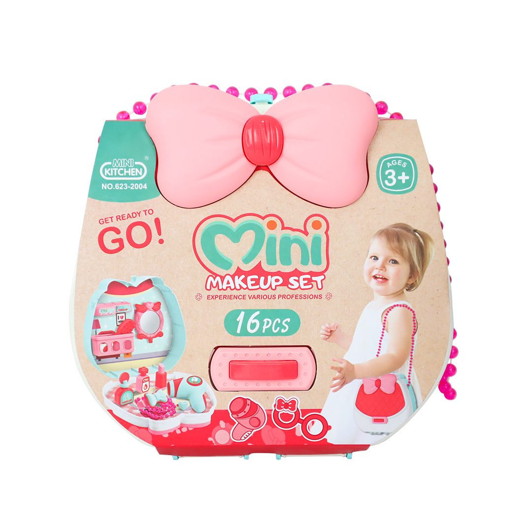 Set içeriği: Aynası, oje, saç cilası, ruj, kurdeleli saç tokası, fırça vs.