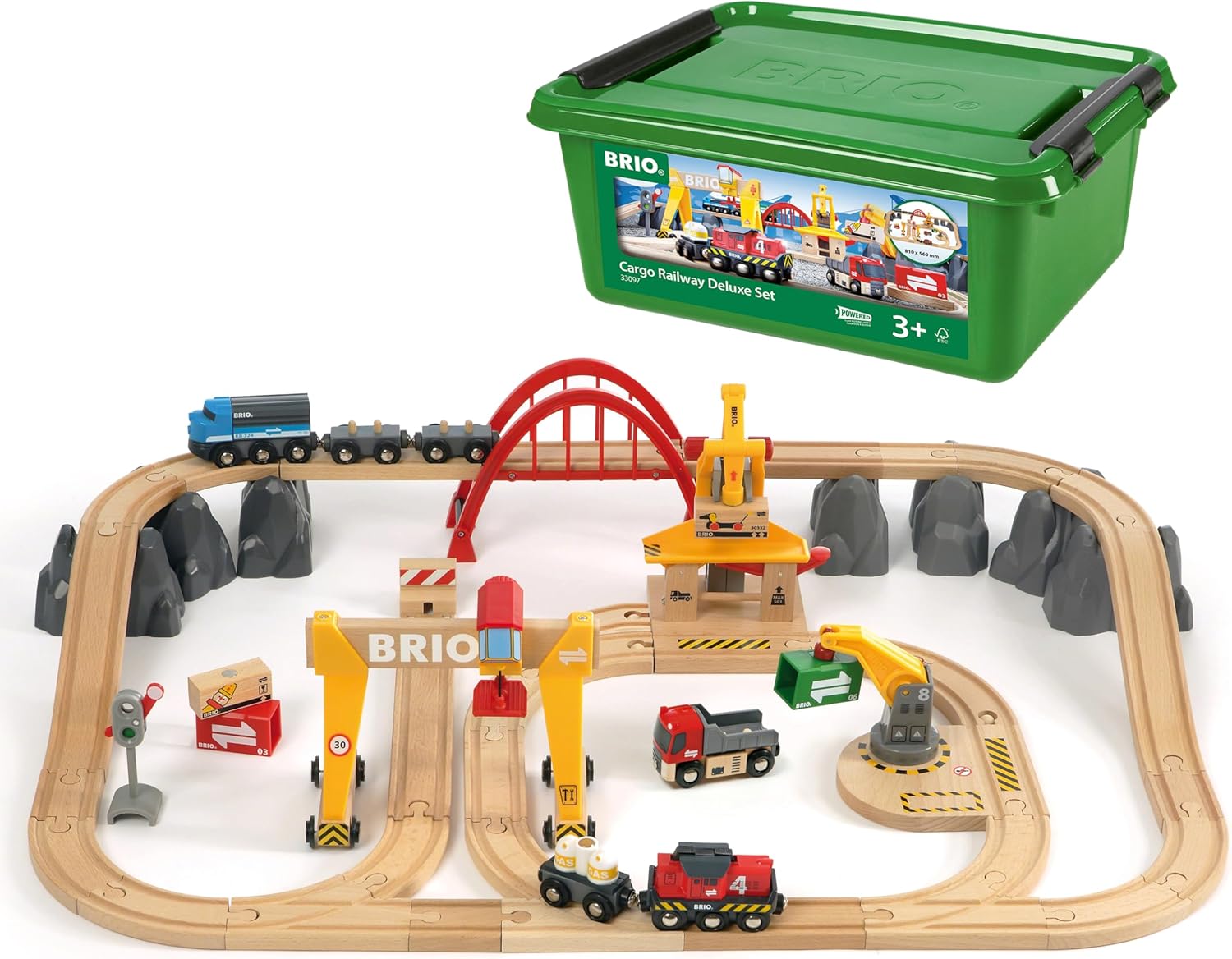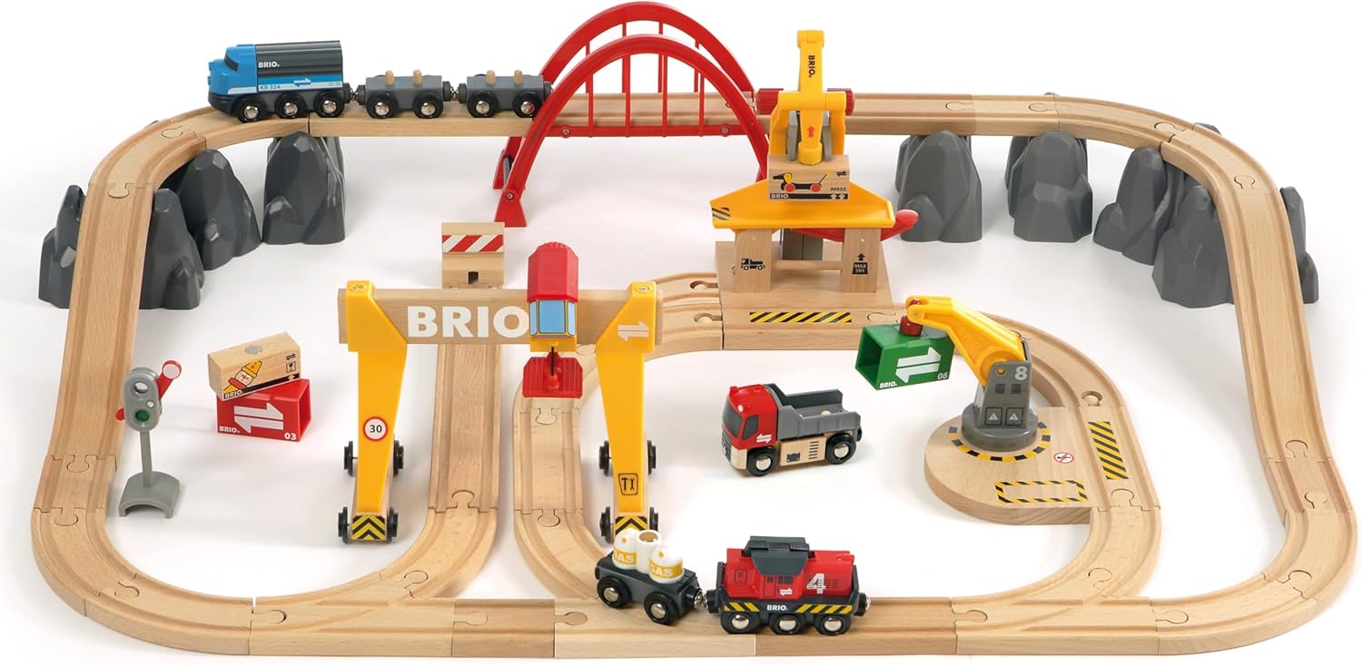 54 parçalı Brio Delüks Kargo Tren Yolu Seti ile kargo ve