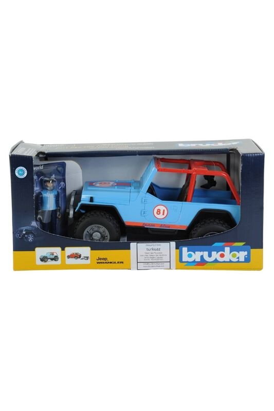 Kutu içerisinde; Bruder Jeep Cross Safari aracı ve kasklı figür yer almaktadır.