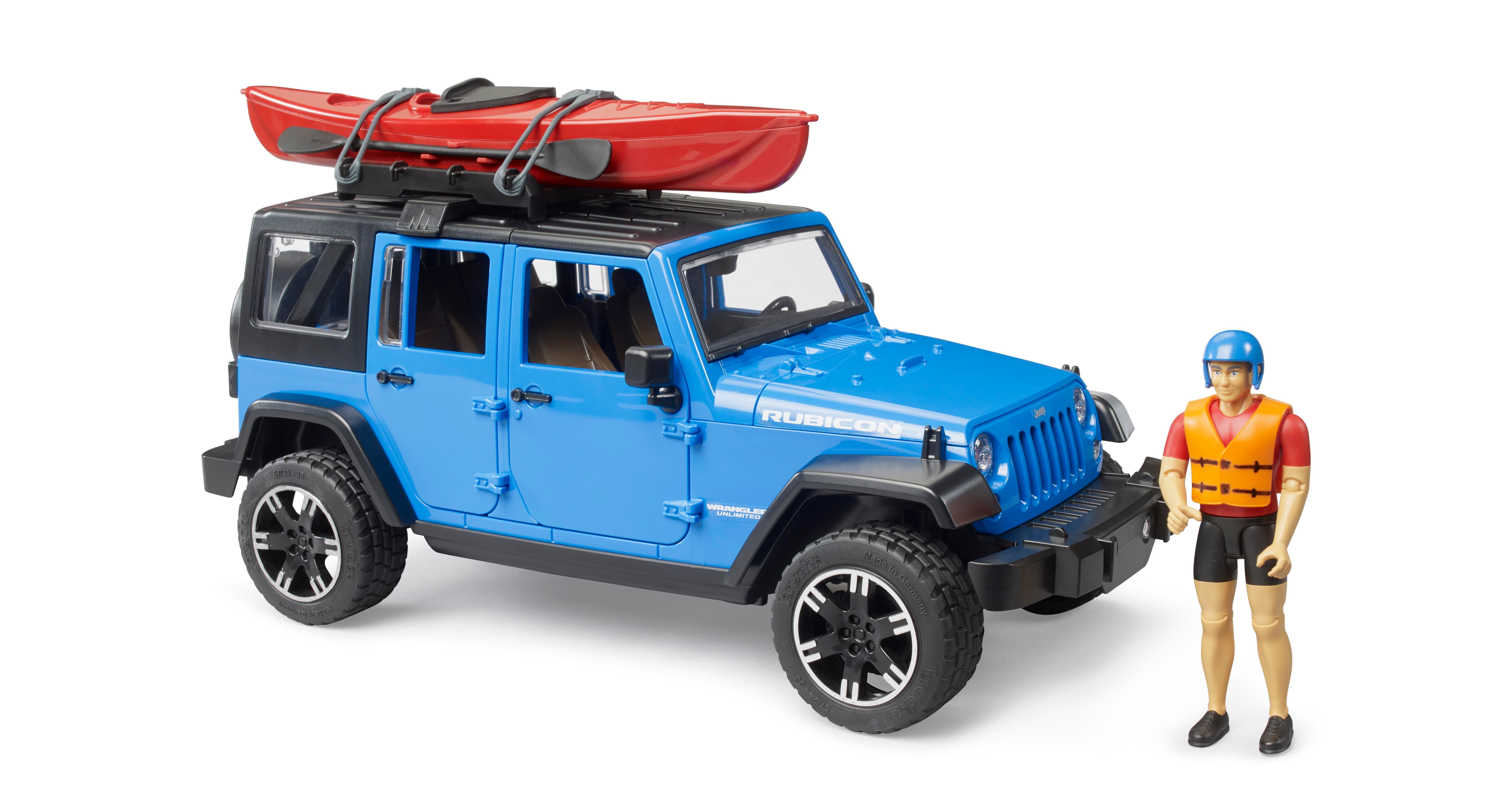 Her türlü engebeli yolları en konforlu ve güvenli şekilde aşmak isterseniz bu dört çeker "Bruder Jeep Wrangler U. Rubicon, Kano ve Sürücüsü" tam size göre.