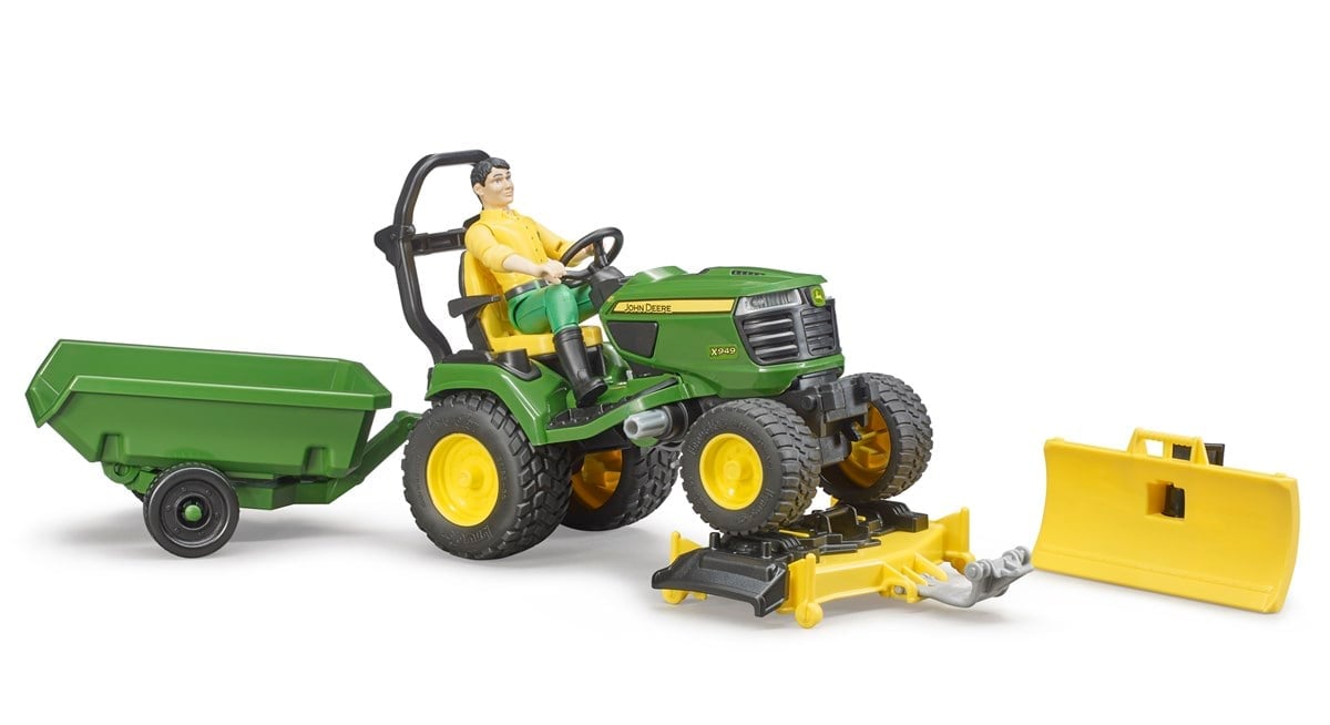 Bruder John Deere Çim Biçme Traktörü ve Bahçıvan Figürü, bahçe ve tarım temalı oyuncakları seven çocuklar için özel olarak tasarlanmış, gerçekçi ve eğitici bir settir.