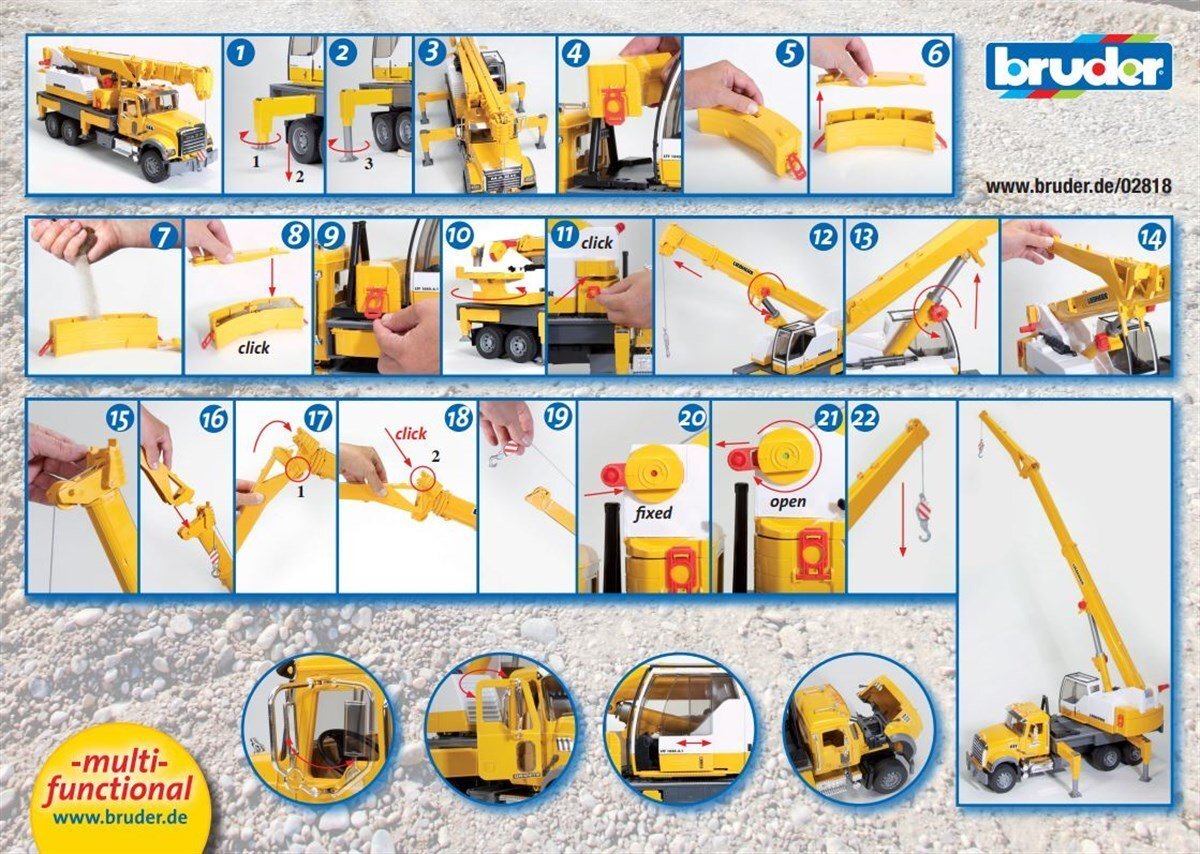 Vinç kollarını gökyüzüne doğru uzattığında, 130 cm yüksekliğe erişebilen "BRUDER Mack Granite Vinçli Kamyon" küçük mühendislerimize yukarıdan bakacak.