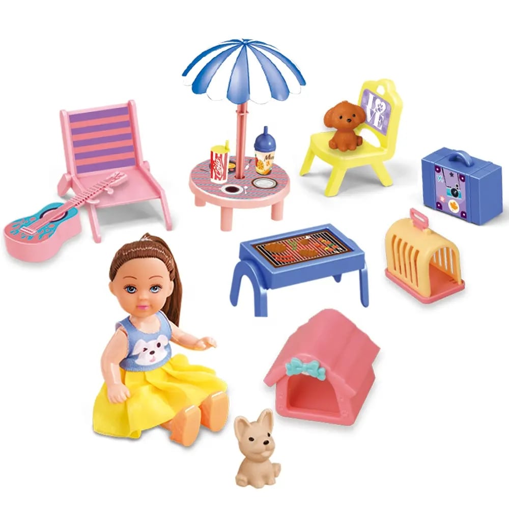 Setin içerisinde bebek figürü, sevimli bir evcil hayvan ve çeşitli kamp aksesuarları yer alarak çocukların kendi hikâyelerini oluşturmasına olanak tanıyor.