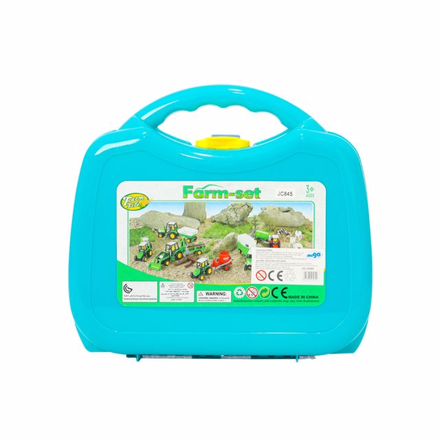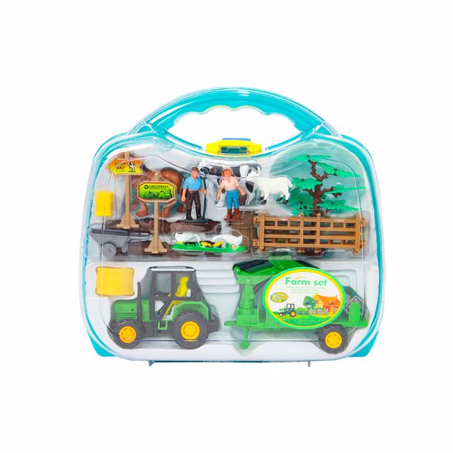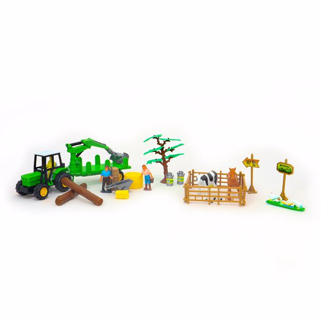 Set içerisinde 2 adet hayvan figürü, traktör ve çeşitli