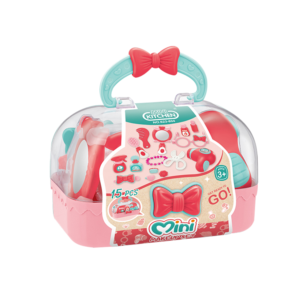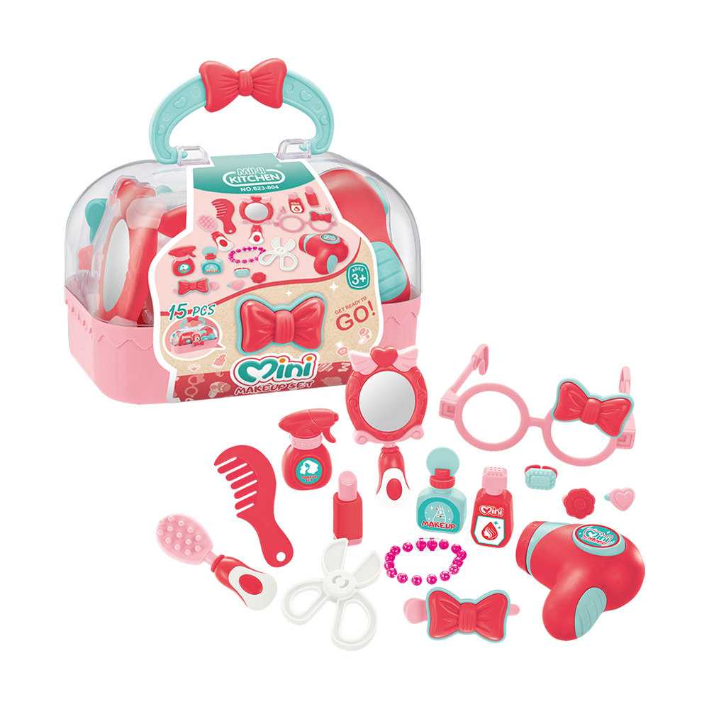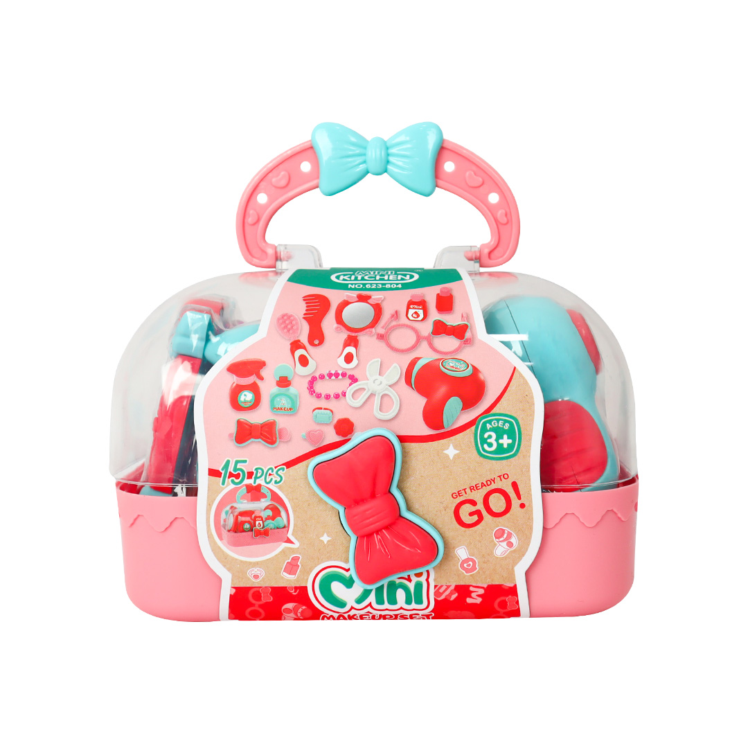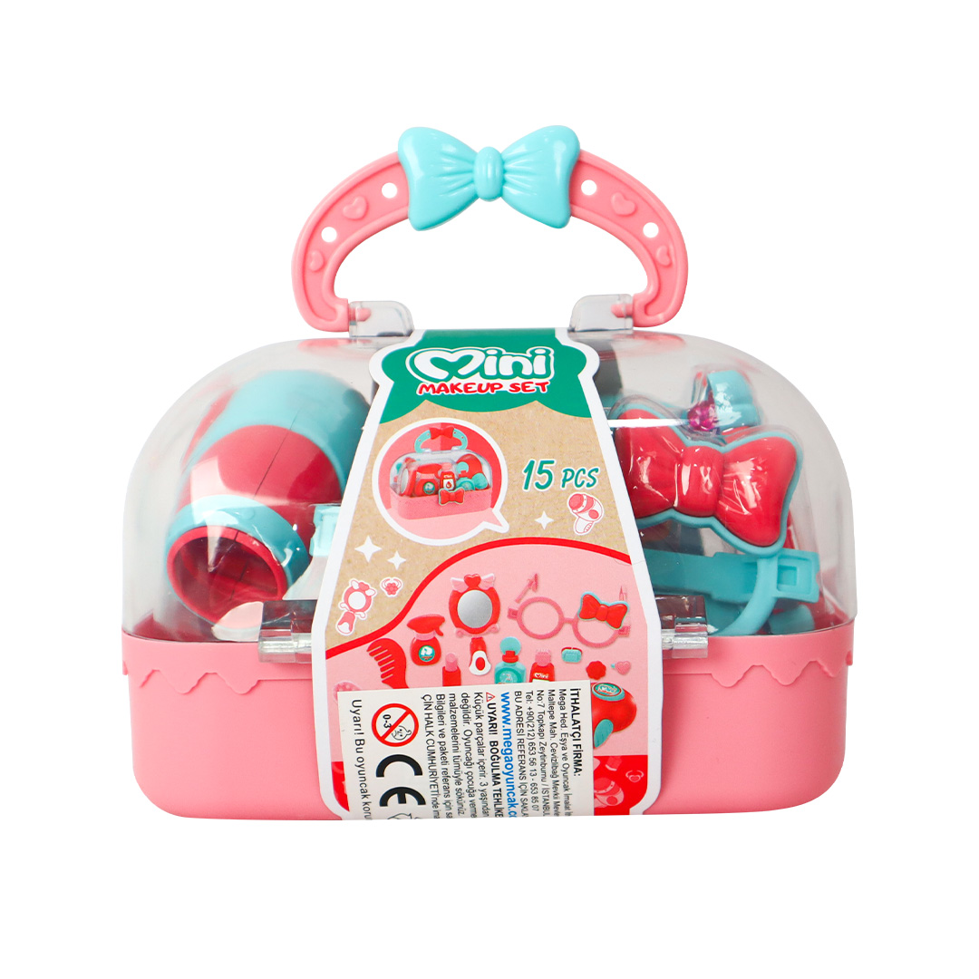 Set içeriği: Aynası, oje, saç cilası, ruj, kurdeleli saç tokası, fırça vs.