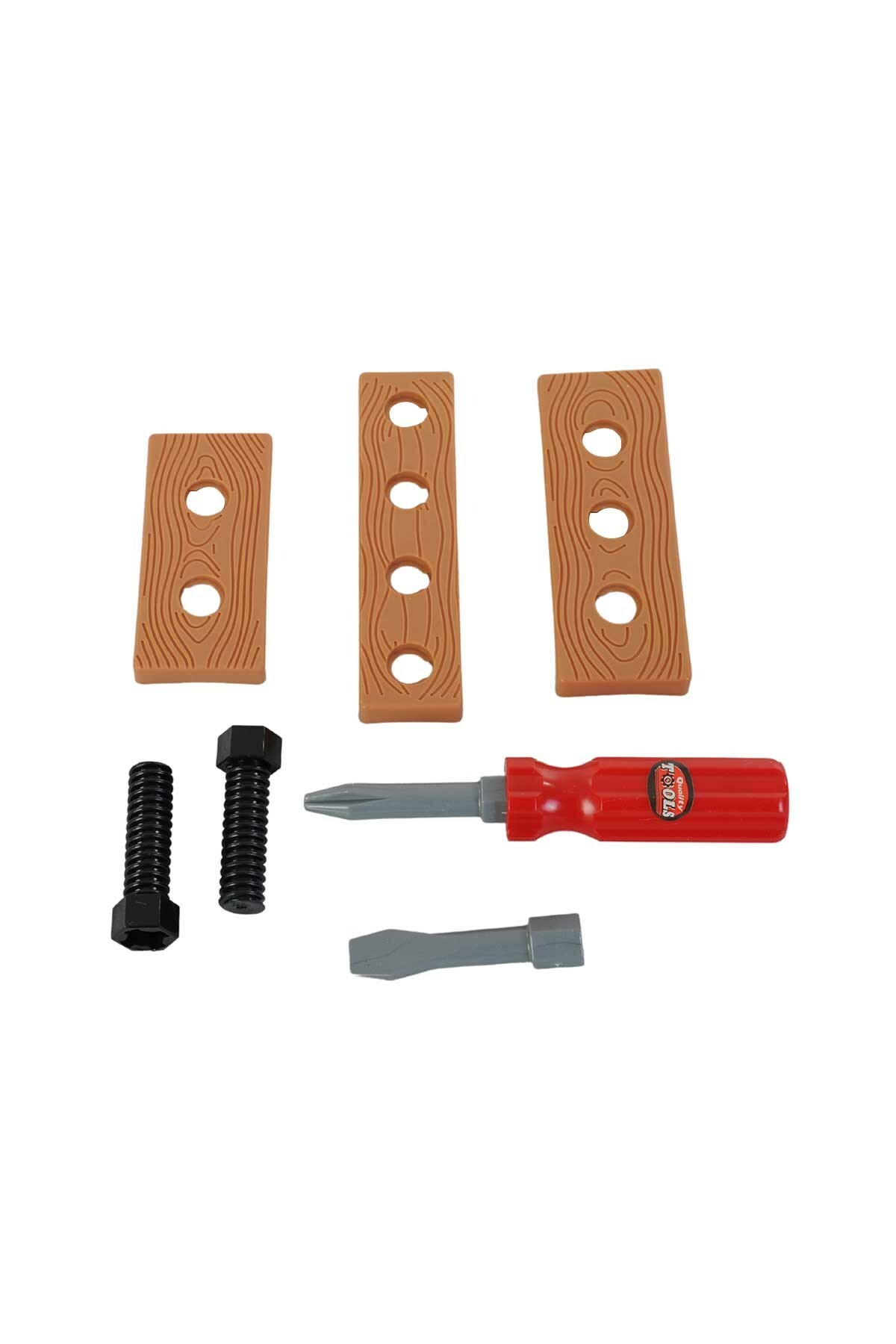 matkap ucu, 1 adet tornavida sapı, 3 adet farklı boylarda delikli tahta, 1 vidalama makinesi bulunur.