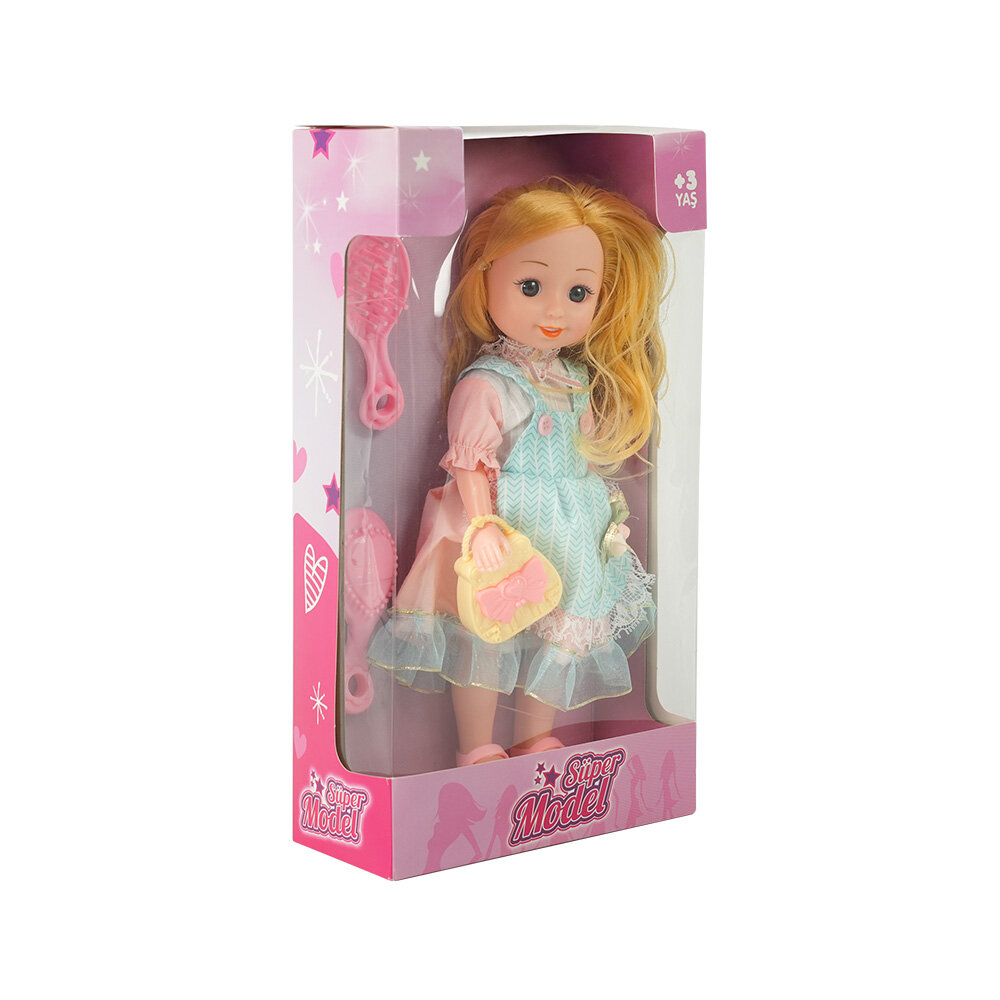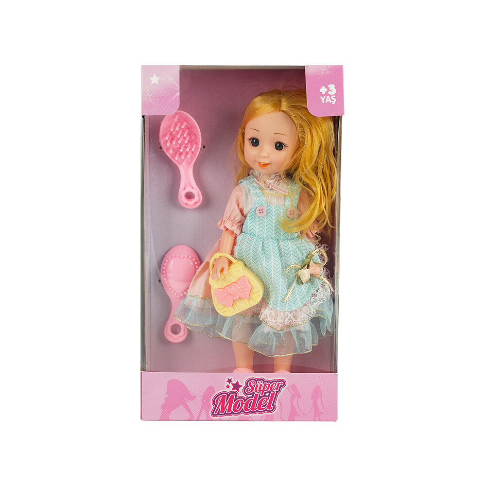 Sevimli yüz ifadesi, yumuşak dokulu sarı saçları ve şık elbisesiyle bu bebek, çocukların hayal gücünü oyunlara taşıyor. Kutunun içinde yer alan mini çanta ve tarak seti sayesinde çocuklar, bebeğin saçlarını tarayabilir, ona bakabilir ve farklı rol oyunları kurabilir.