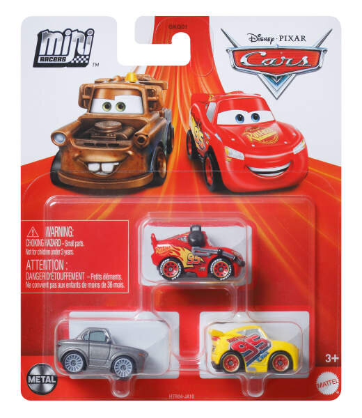 Her temalı 3'lü paket, özel bir metal araba ve iki tamamlayıcı karakter aracı içerir.