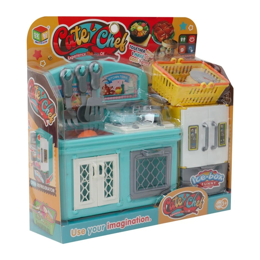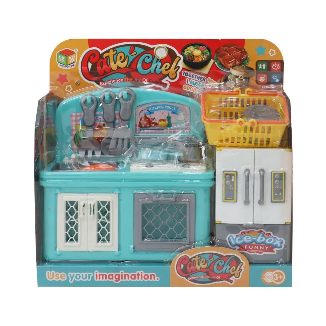 İçeriğinde 1 adet dolaplı oyuncak mutfak tezgahı, oyuncak