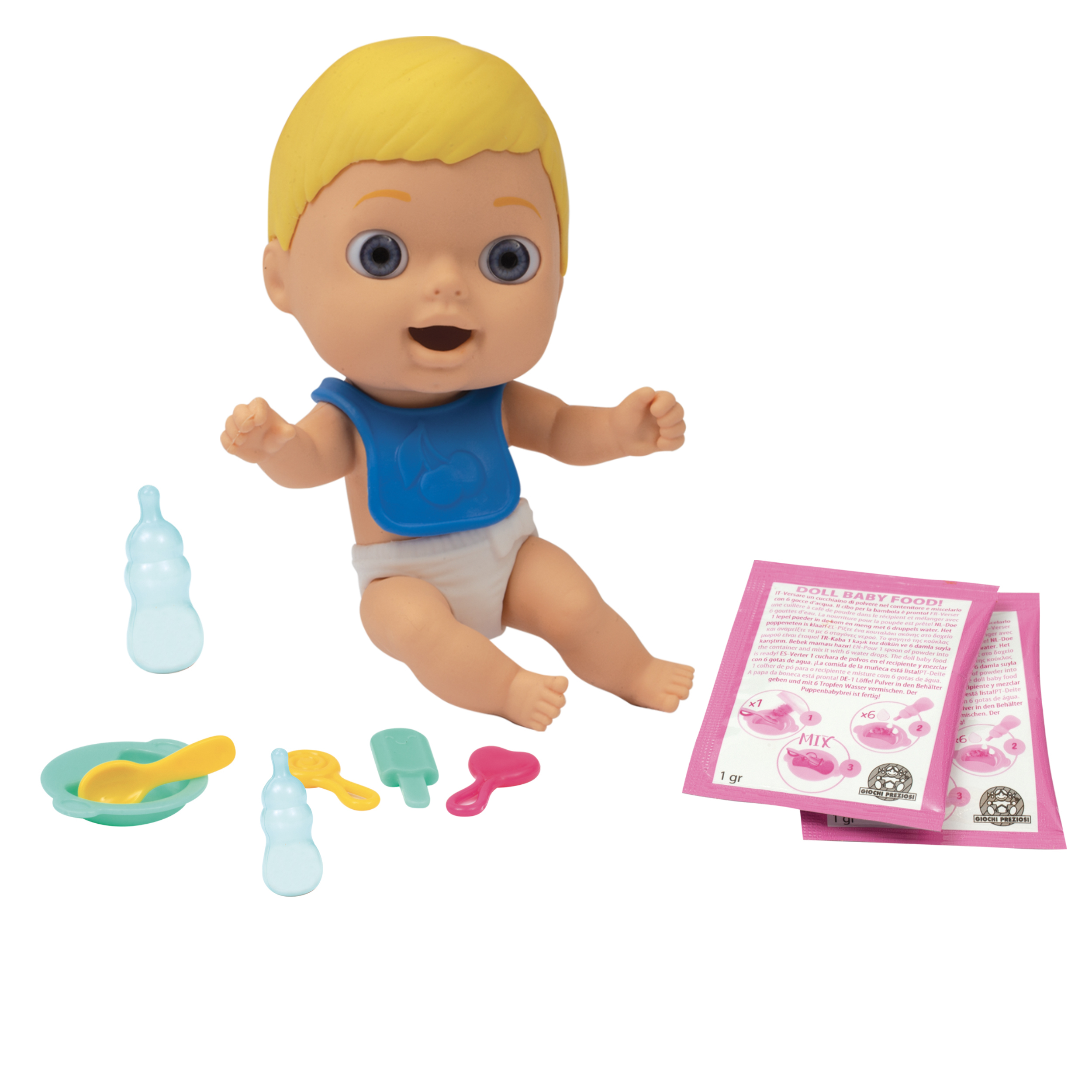 Paket içerisinde 1 Bebek, 1 Aksesuar ve 1 çıkarılabilir Bez’in yanı sıra 2 Mama Paketi, Tabak, Kaşık, Su Şişesi, Dondurma, Lolipop, Biberon’dan oluşan
