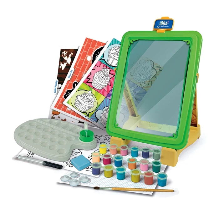 Kutu içerisinde; resim sehpası ve şeffaf panelin monte edileceği çerçeve, çerçeve için vantuzlar, kaydırmaz ayaklar, vidalar, boyanacak ve üzerinden geçilecek çizimler ve filtreler, çok işlevli el işi kağıdı, tempera boyaları için palet, siyah keçeli kalem, farklı renkte boyalar içeren kaplar, su doldurulacak kap, boya fırçası, çıkartma, sünger, su ölçü pipeti ve resimli kullanım kılavuzu bulunmaktadır.