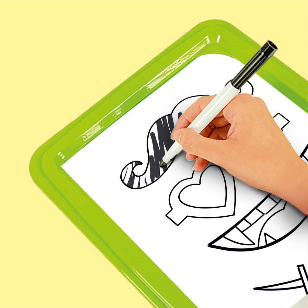 Şeffaf panelini çerçeveye monte edebilir ve istediğin resmi yapmanın eğlencesine varabilirsin. Boyanmayı bekleyen çizimlerini rengarenk boyalarınla renklendirebilirsin. Bunun için ihtiyacın olan fırçan, su kabın ve paletin kutu içinde mevcut.