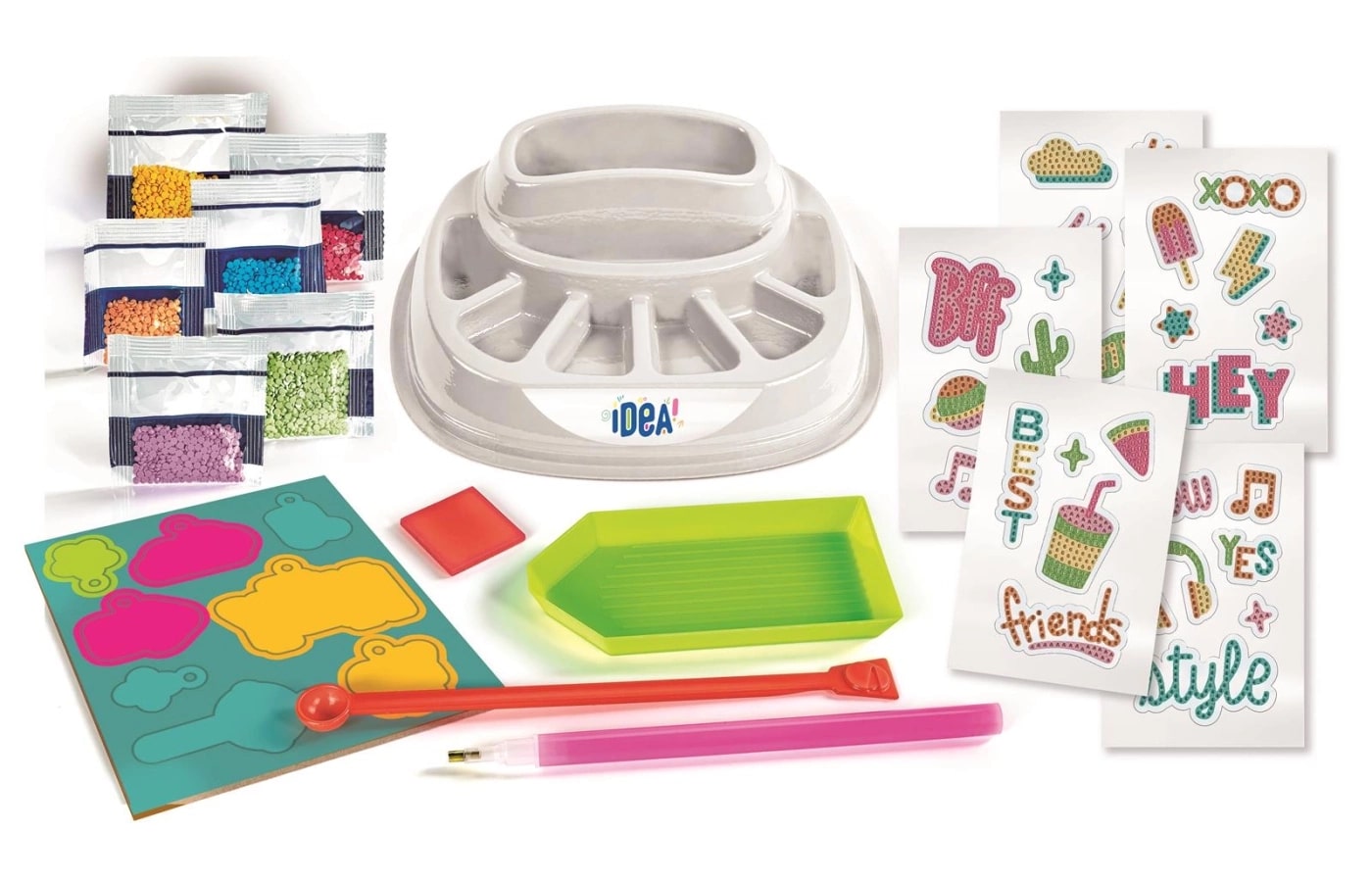 Pop-art stilindeki özel desenler ve parlak 3D taşlar sayesinde çocuklar kendi ışıldayan tasarımlarını kolayca oluşturabilir.