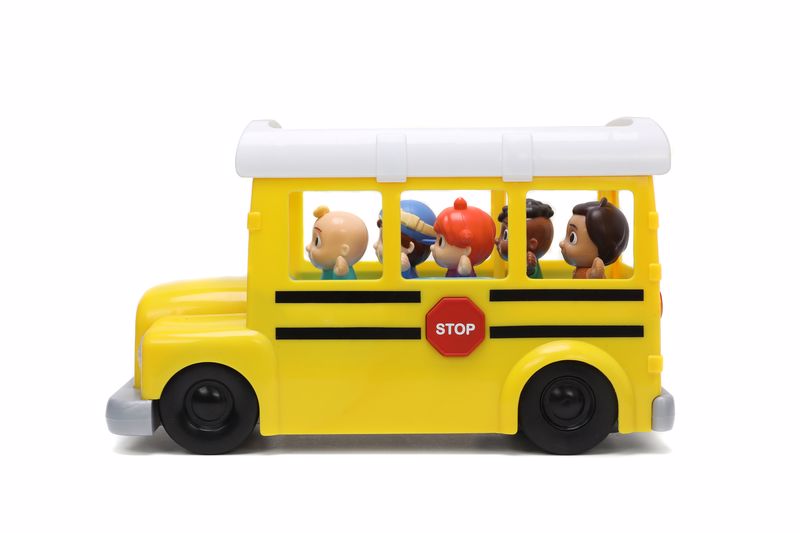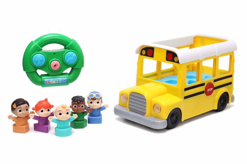 JJ ve en iyi arkadaşları Yoyo, Tom Tom, Cody ve Nina'yı bu etkileşimli Okul Otobüsü Uzaktan Kumandalı Araçla okula ve okuldan getirin! Kullanımı kolay bir kontrolör ile küçükler ileri, geri gidebilir ve dönebilir. Okul Otobüsü Wheels on the Bus ve ikonik CoComelon tema şarkısını çalarken parlak farlar parlar ve yol gösterir. (Sessiz mod'da mevcuttur!)