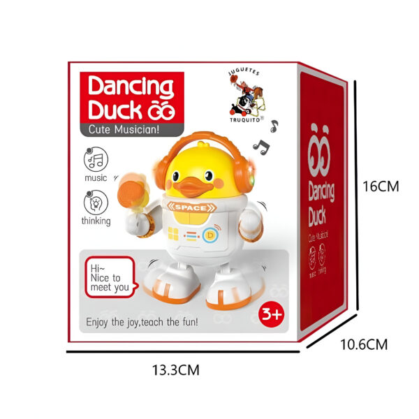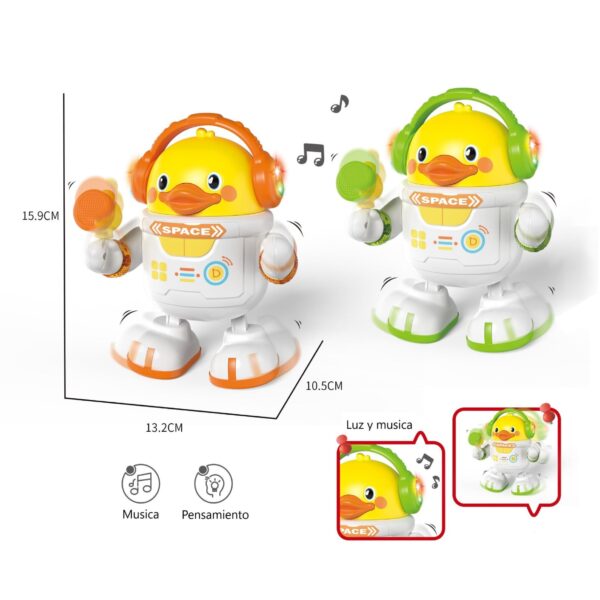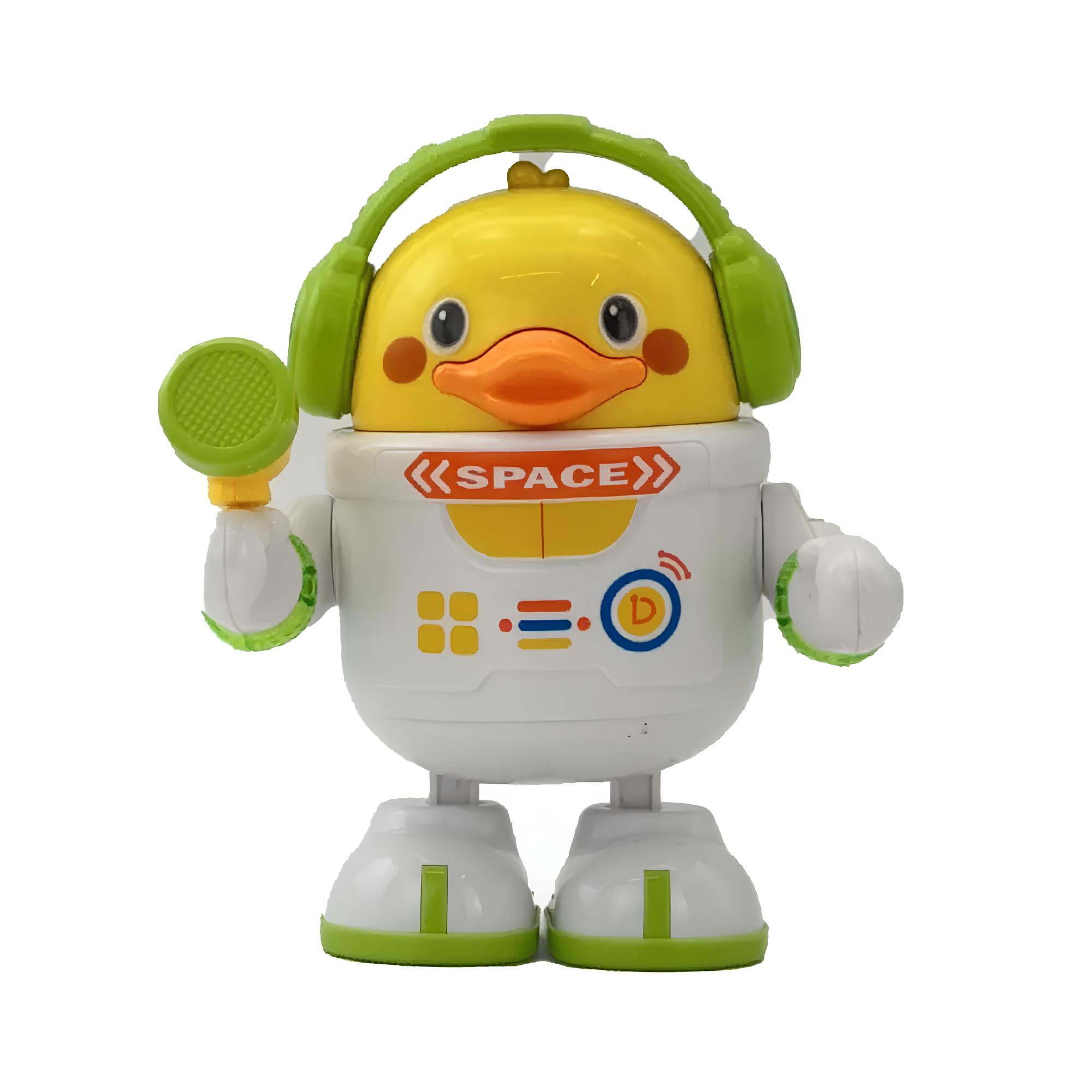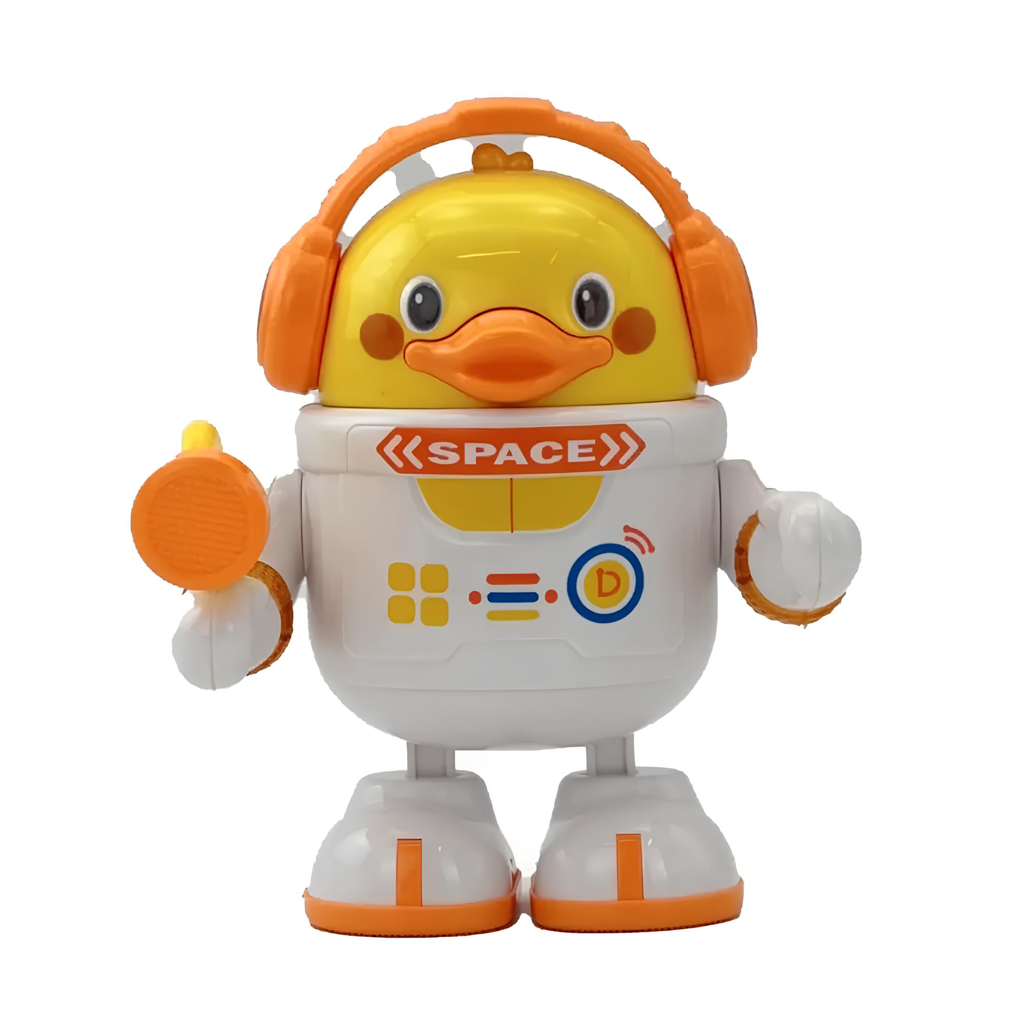 Bu sevimli uzay ördeği, kulaklıkları renkli LED ışıklarla yanarken eğlenceli melodilerle dans ediyor.