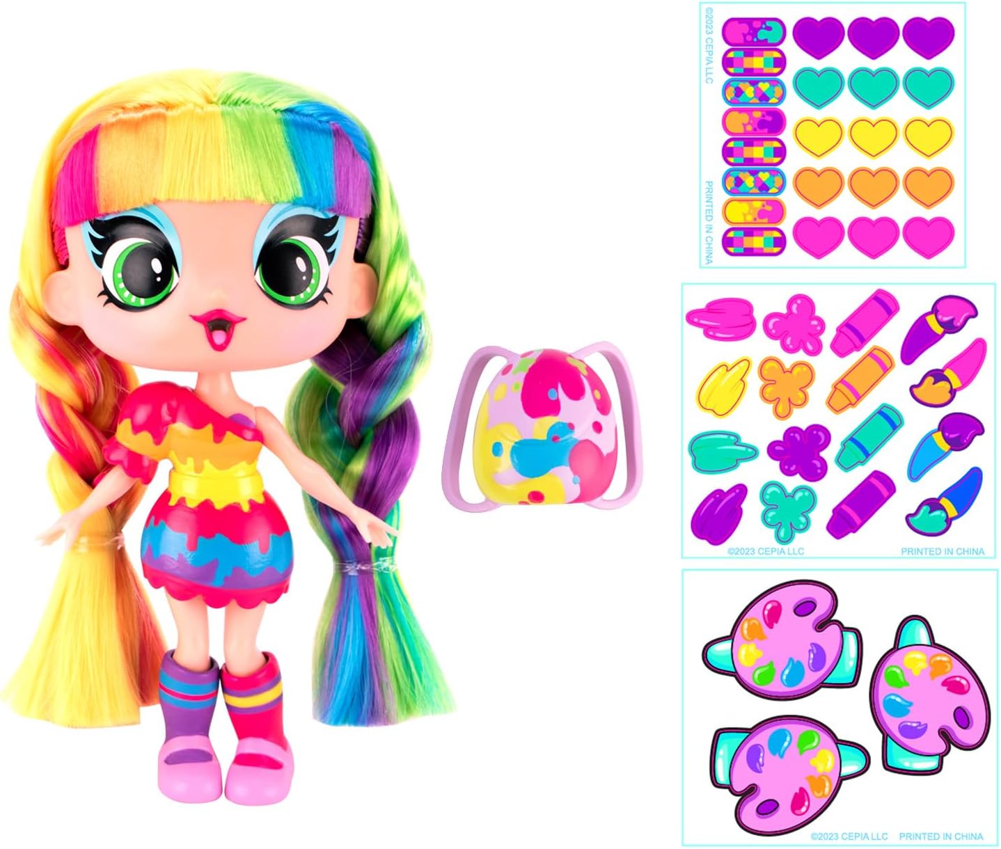 Özel Decora bebeği, gökkuşağı renklerinde süper saçlara ve