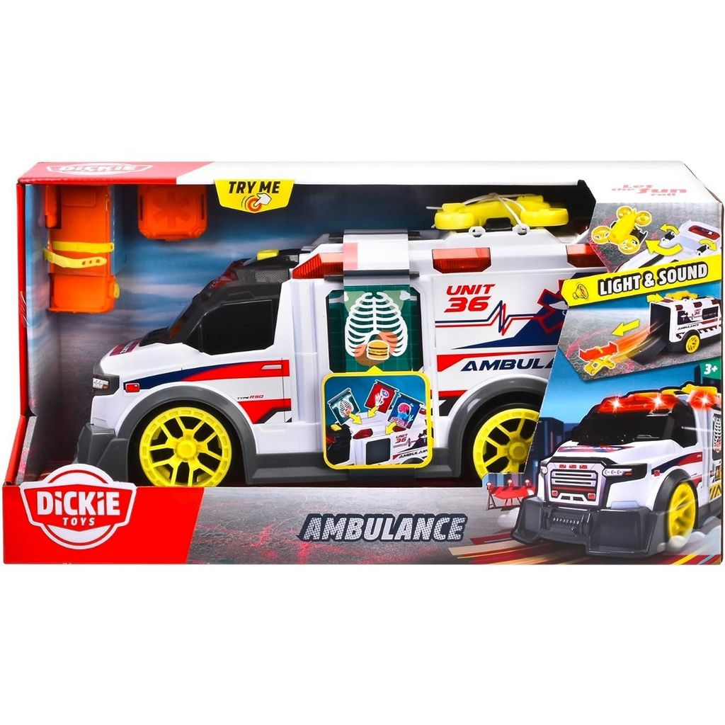 özelliklerine sahip oyuncak ambulans Dickie Toys'un bu oyuncak ambulansı
