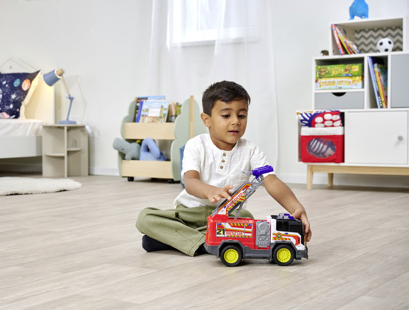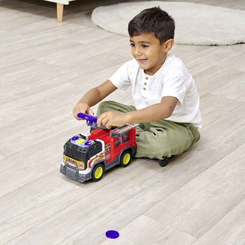 donatılmış 30 cm uzunluğundaki serbest tekerlekli itfaiye aracı, interaktif bir