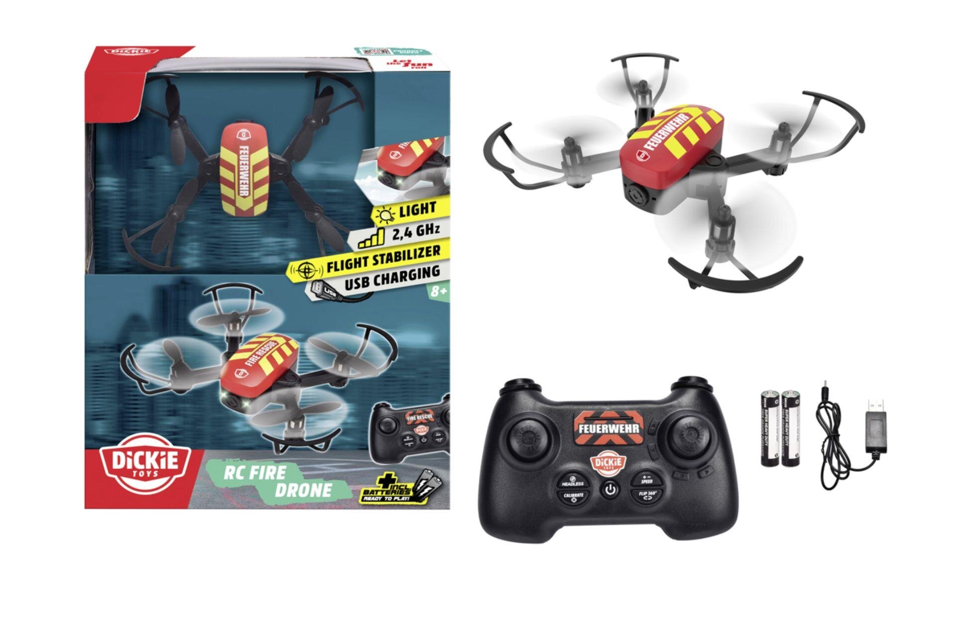 Dickie RC Fire Drone Uzaktan Kumandalı İtfaiye Drone, 8 yaş ve üzeri itfaiyeci hayranları için tasarlanmış, uçuş dengeleyicili ve ışıklı, muhteşem bir oyuncaktır.