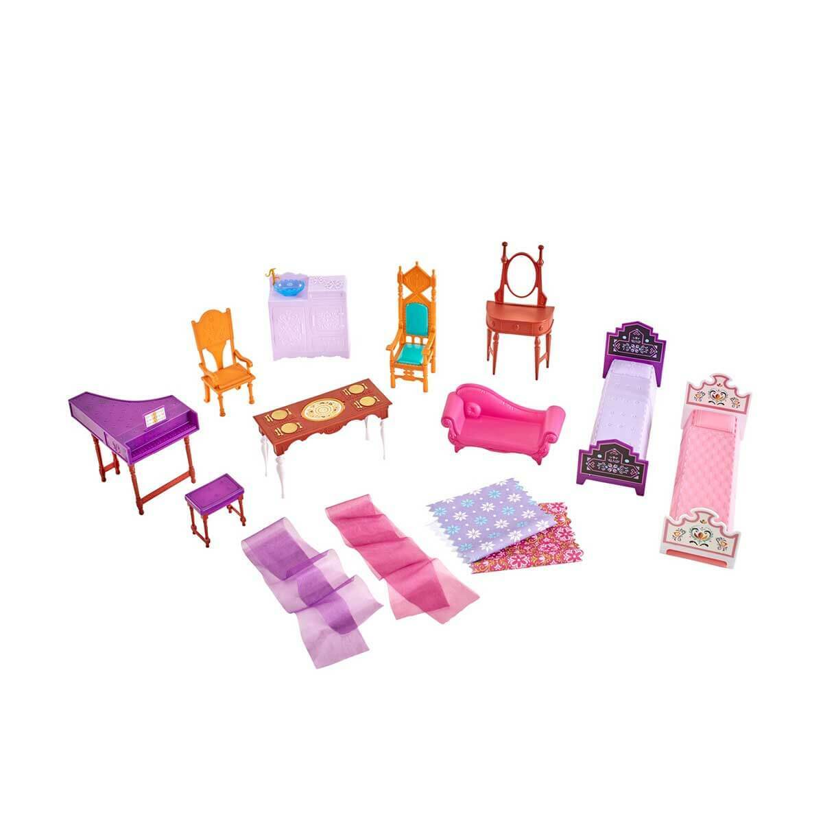 İlk katta mutfak, müzik odası ve taht odası, ikinci katta Anna ile Elsa'nın (oyuncak bebekler kutuya dahil değildir) yatak odaları ve makyaj odası,