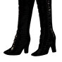 Bu duruşu olan moda bebeği, botlar ve yumuşak bir pelerin ve