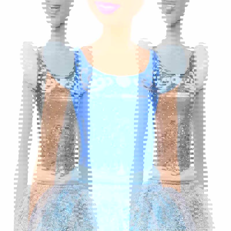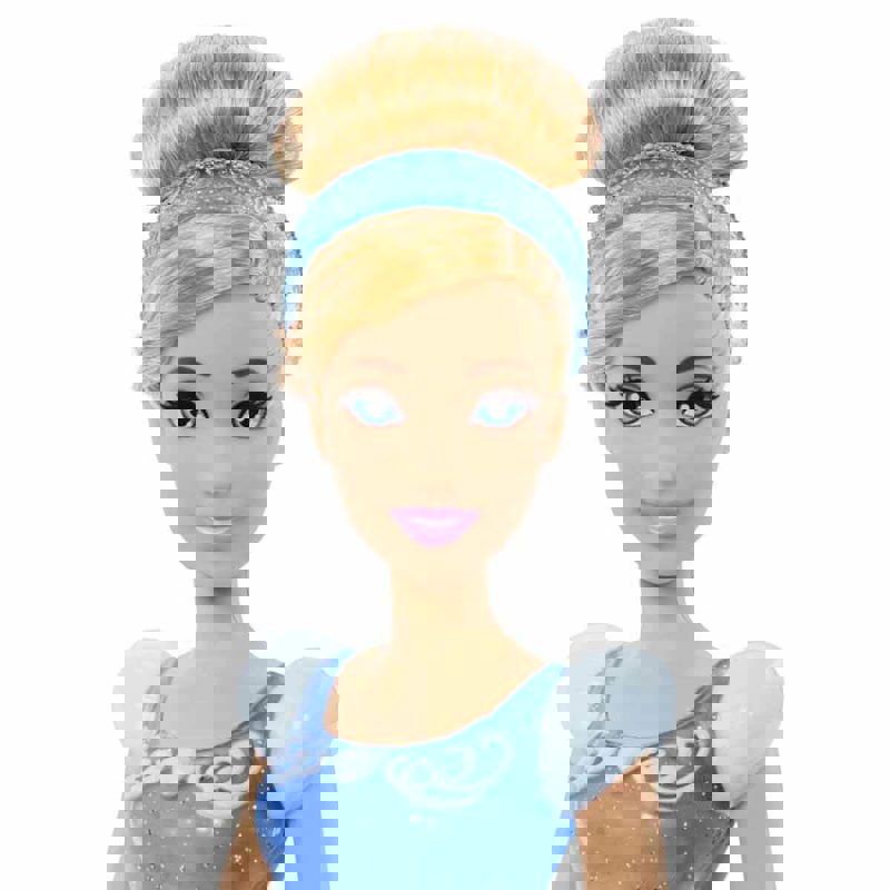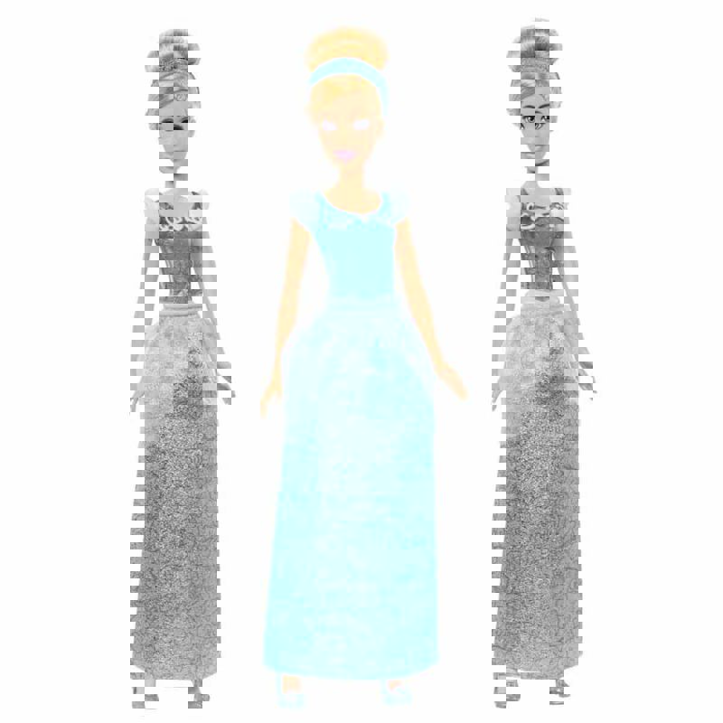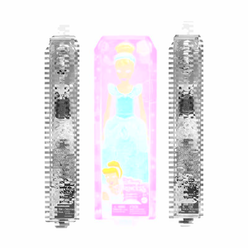 Kıyafeti, Cinderella'nın hikayesini anlatan simli bir üst ve çıkarılabilir etekten oluşur. Bu Disney prensesi bebeği, farklı tarzlardan ilham alan oyunlar oynamak için taranabilir saçlara sahiptir.
