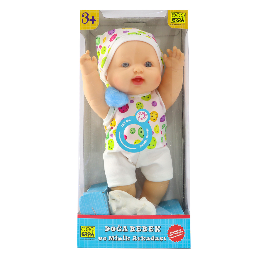 Türkçe Konuşan Doğa Bebek, kız çocuklarının severek oynayacağı sevimli bir et bebektir.