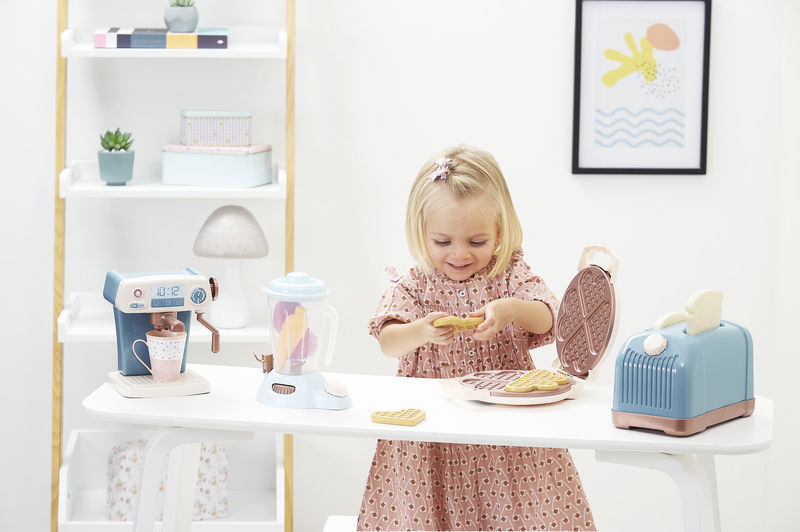 İçerisinde tost makinesi, waffle makinesi, blender ve perkolatör bulunan bu paket, küçük şeflerin günlük mutfak aktivitelerini taklit edebilmelerine olanak sağlıyor.