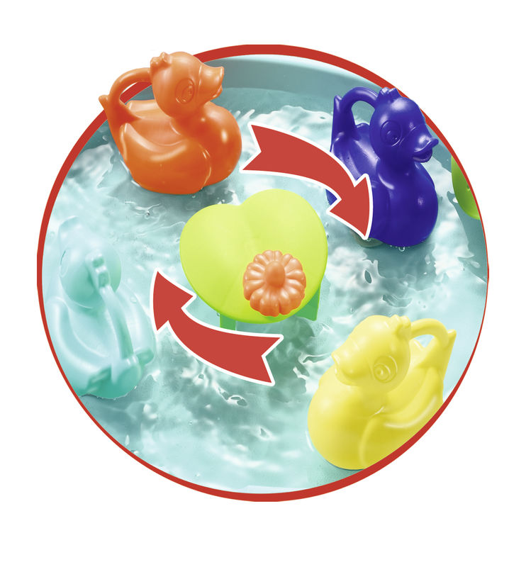 kepçe ve küçük ördekleri suda hareket ettirmek için süslü bir masa içerir.