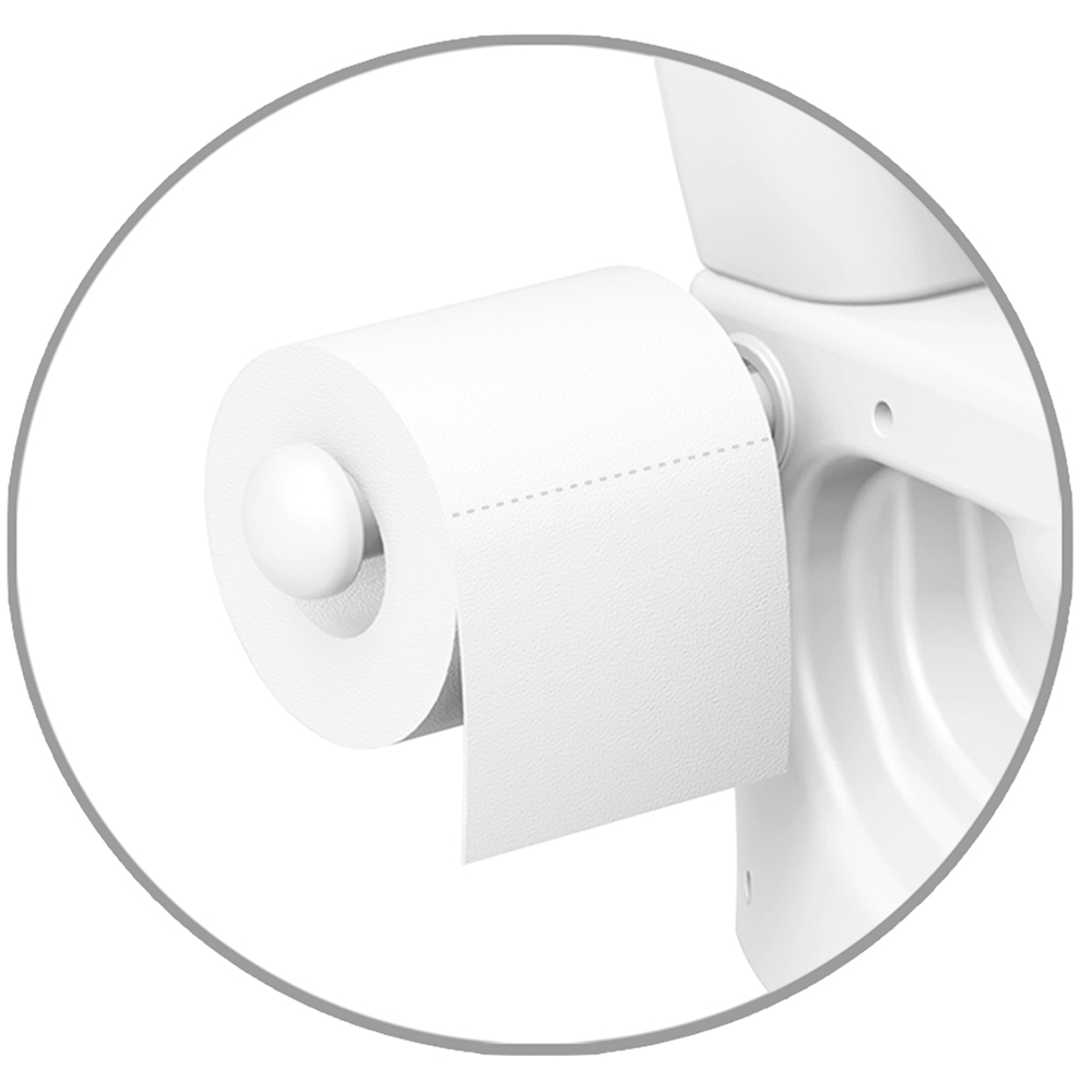Sifon düğmesine basıldığında sevimli bir su sesi müziği duyulur. Tuvalet kağıdı kolu bile var!