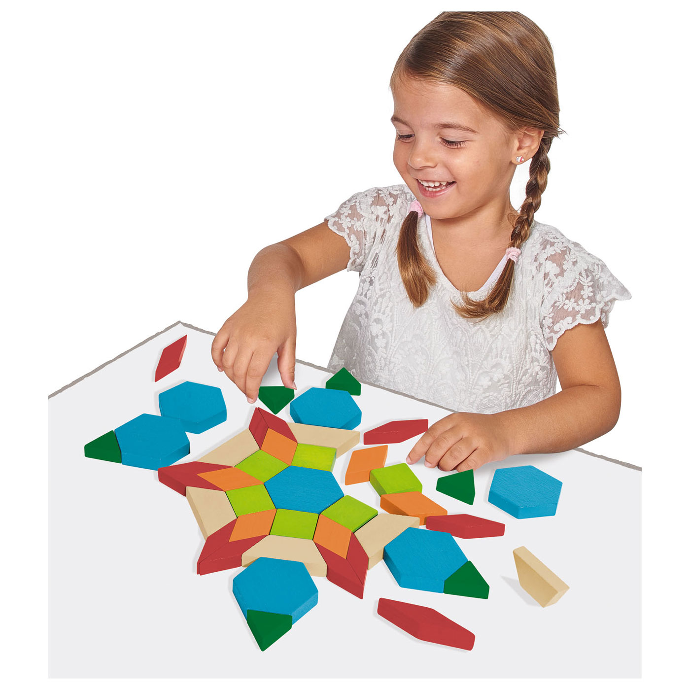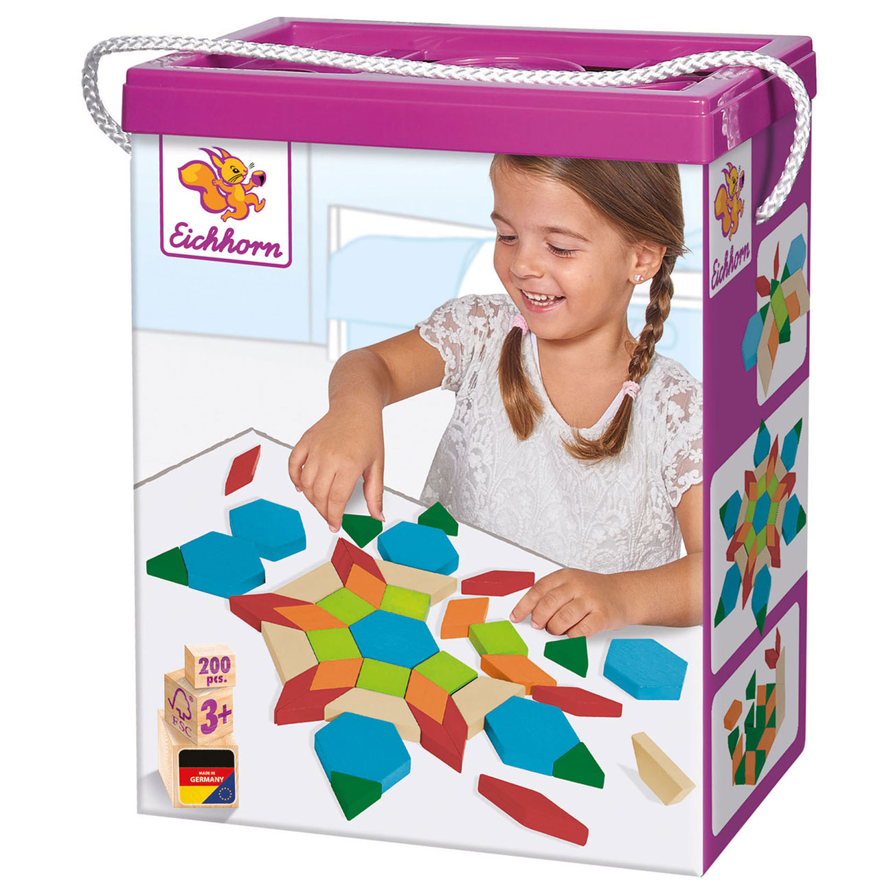 Eichhorn'un 200 parçalı döşeme oyunuyla çocuklar mantıksal düşünmeyi ve geometrik şekilleri öğreniyor.