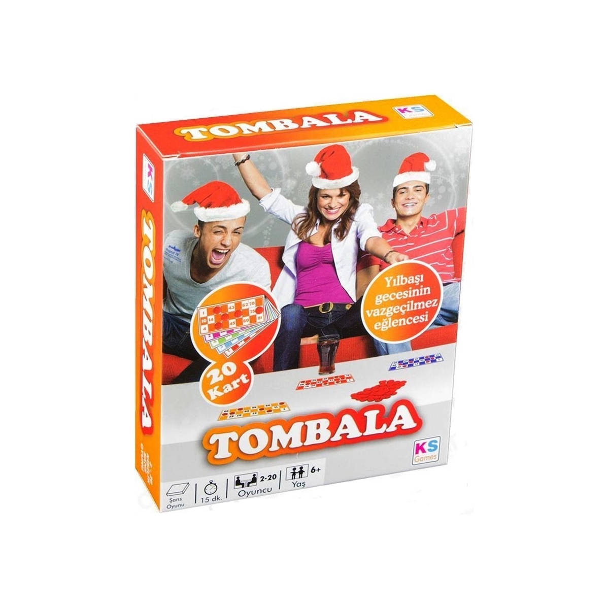 Klasik tombala bu kutunun içinde 20 kart, tombala taşları ve kesesi ile beraber.