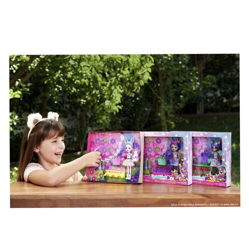 Aksesuarlar tüm Enchantimals Baby Best Friends figürlerine uyar ve karıştırılabilir veya eşleştirilebilir ve sallanan sandalye veya salıncak gibi daha büyük bir parça içerebilir!