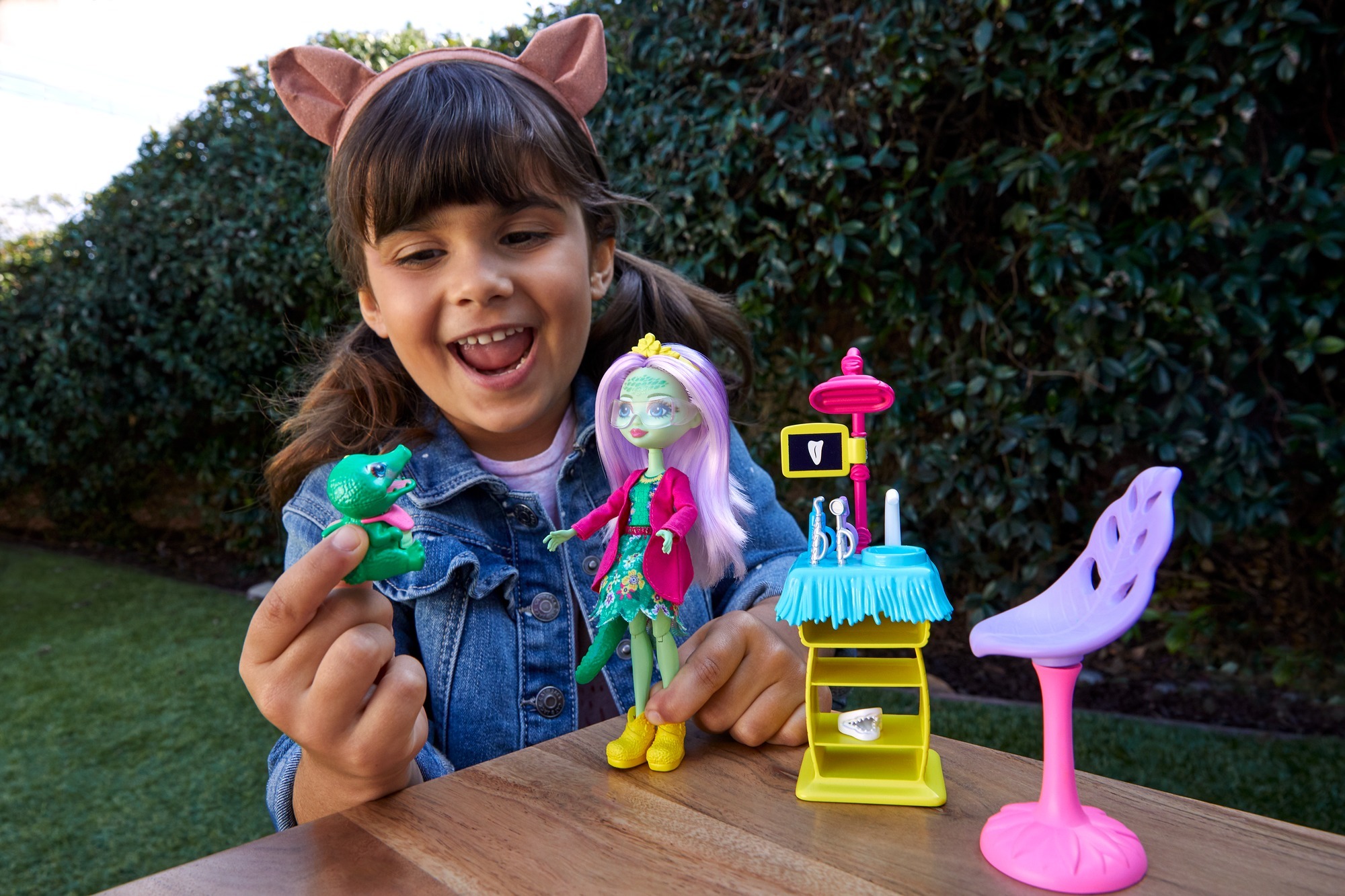 Oyuncak bebek Andie Timsah ve arkadaşı Marshy, La Jungle Enchantée'nin bu diş hekimi ile dişlerine bakabilirler.