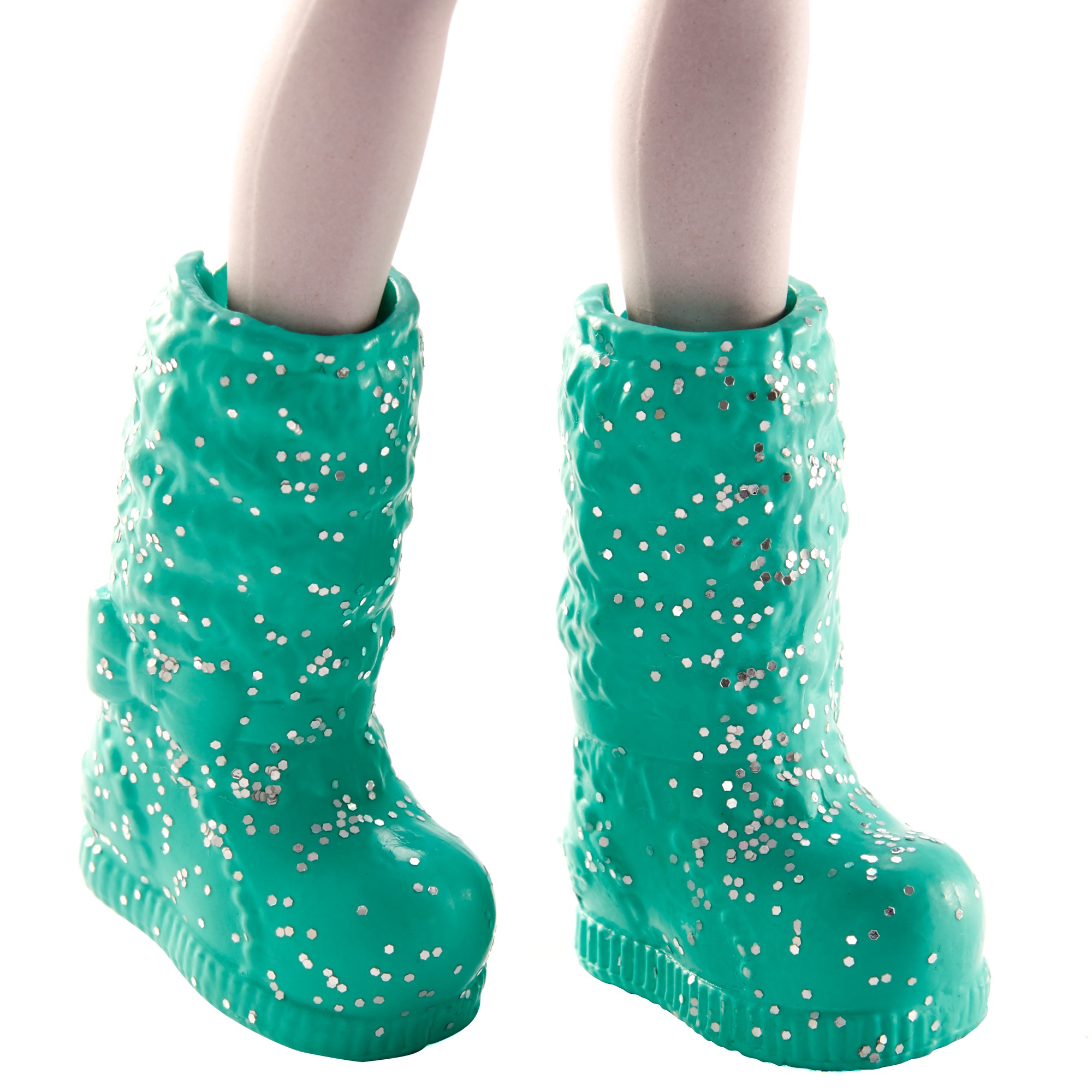Sybill Snow Leopard bebek çıkarılabilir bir benekli etek, ışıltılı kar botları ve tüylü kafa bandına sahiptir.