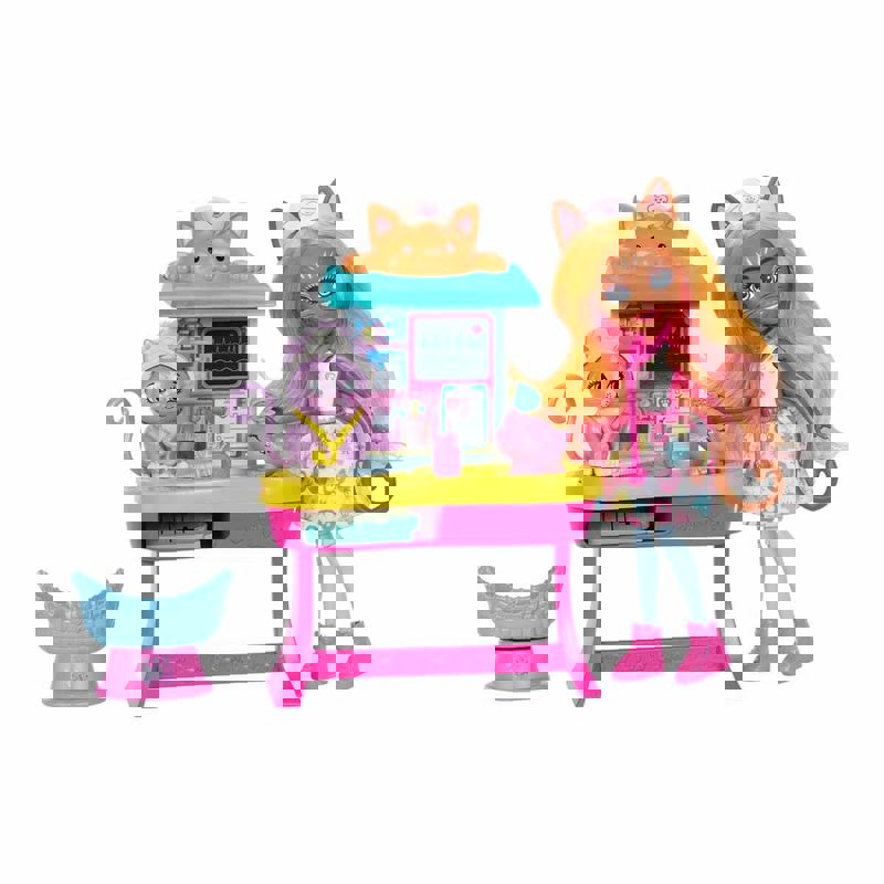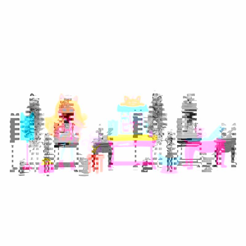 Enchantimals Klinik Oyun Seti hayvan dostlarıyla beraber sevimli bebekleri içerir. Doktor Carlin Cat bebek Enchantimals Klinik Oyun Set'nde herkesi iyileştirebilir!
