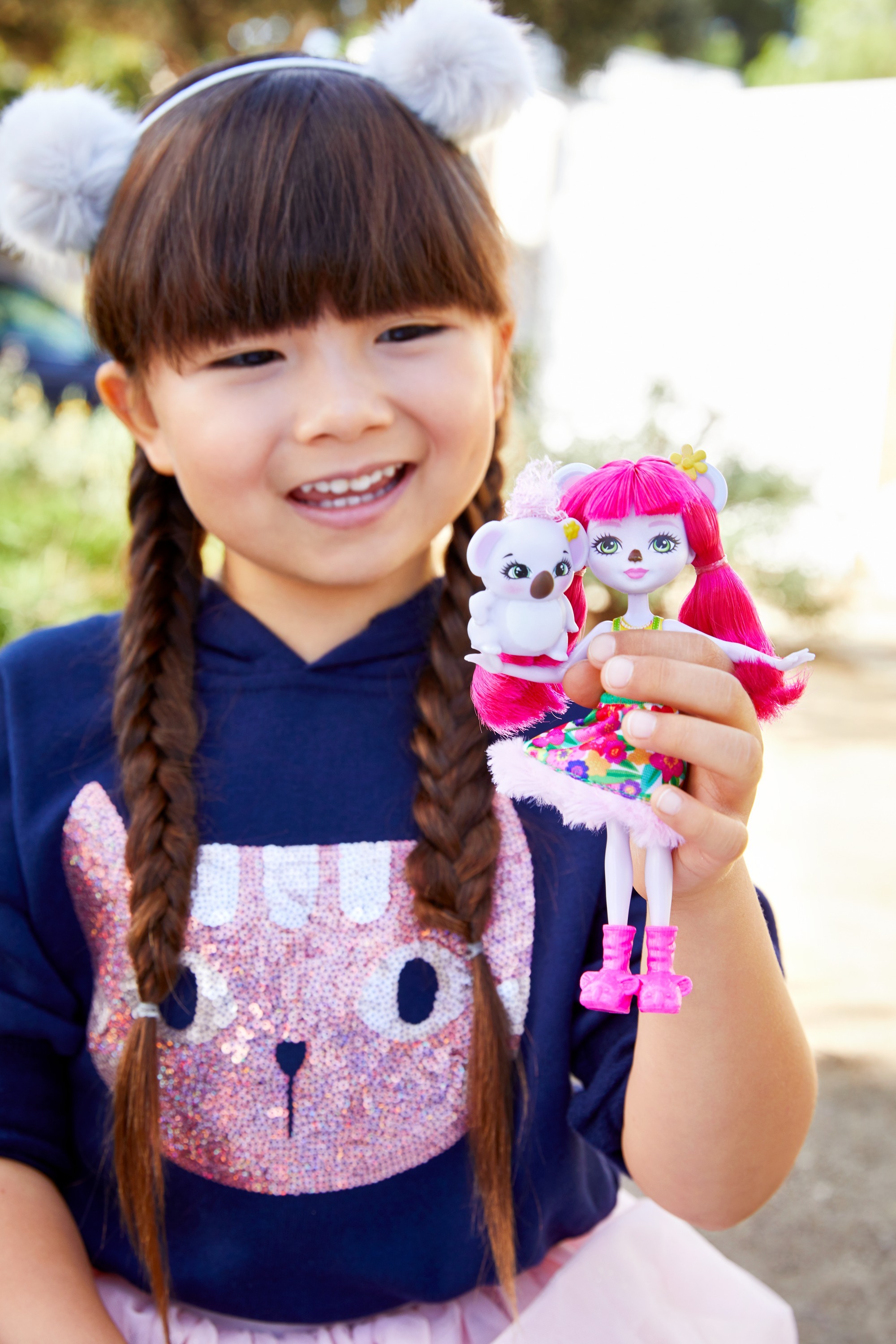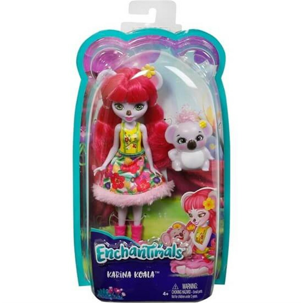 Giysili ve aksesuarlı Enchantimals Koala Karina bebeği ve koala arkadaşı Dab dahildir.