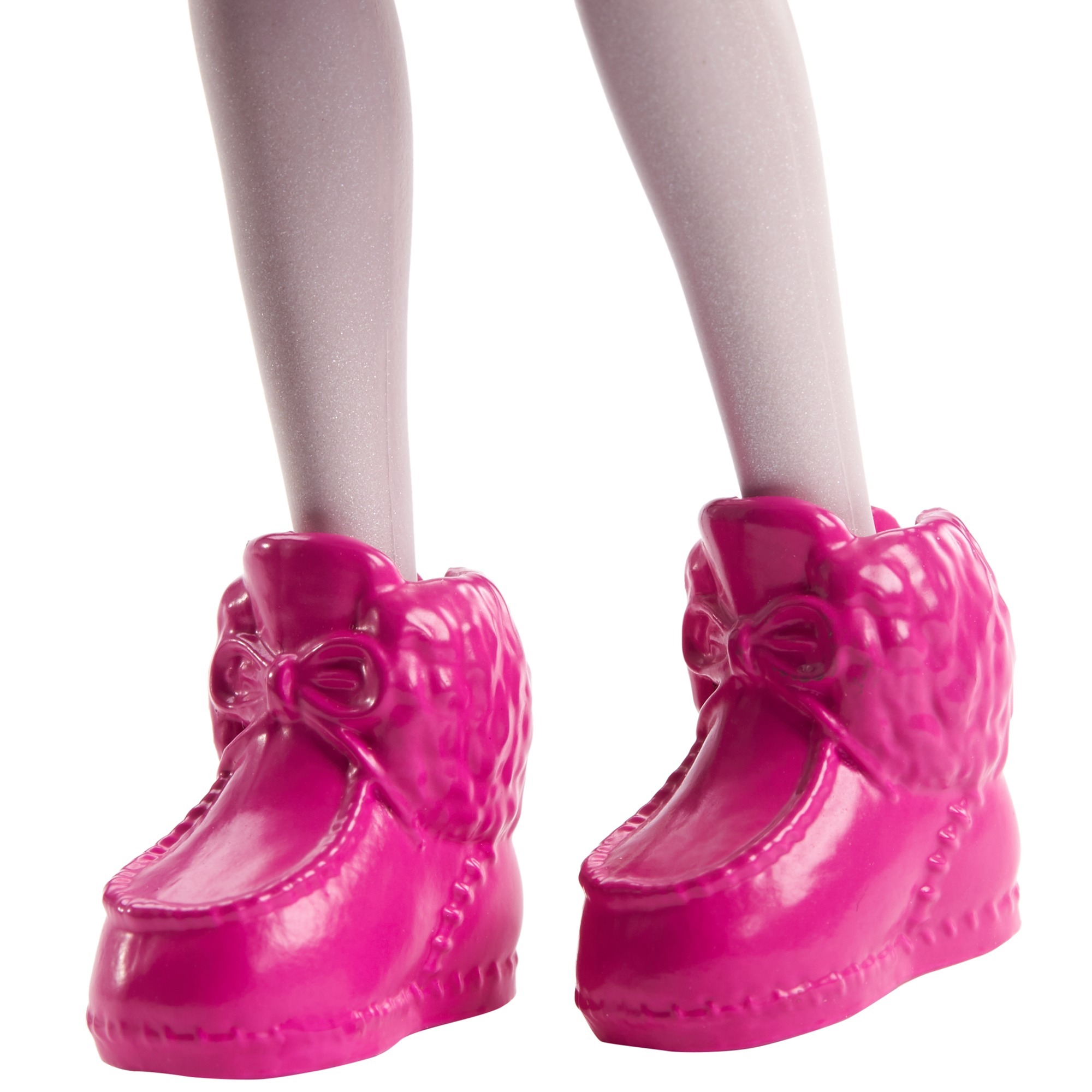 Çıkarılabilir eteği, çizmeleri ve saç aksesuarıyla modaya uygun bir tarza sahiptir.