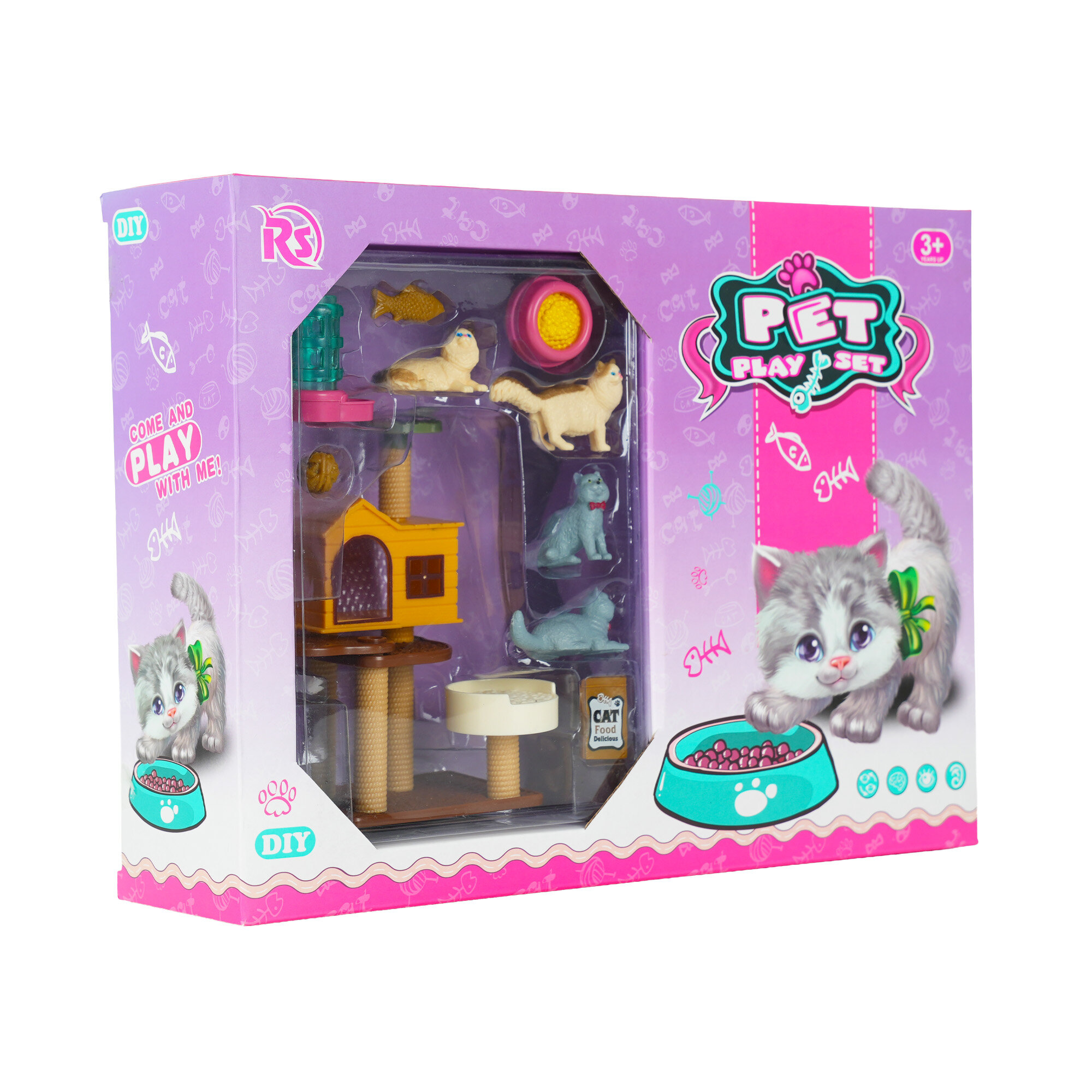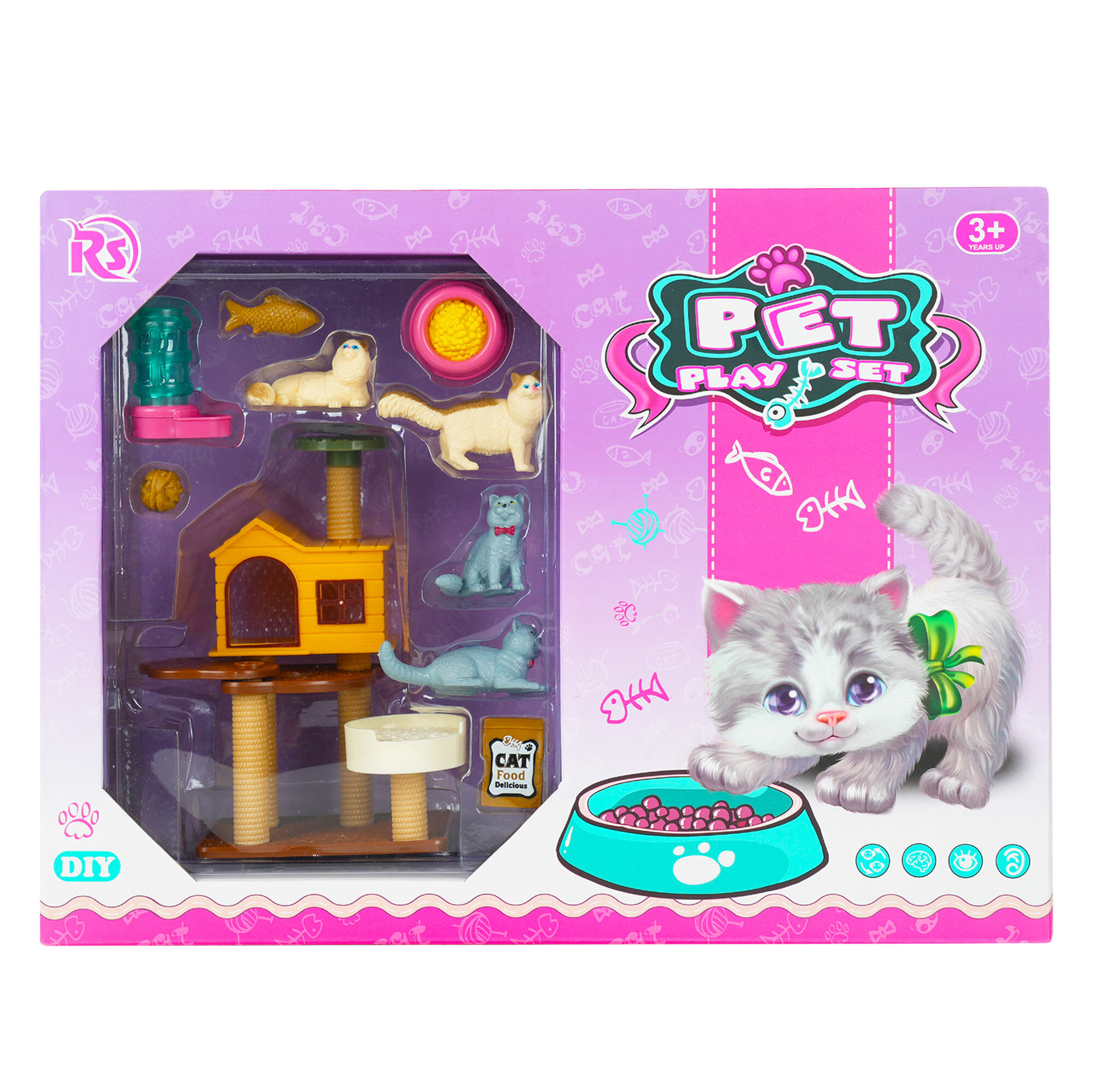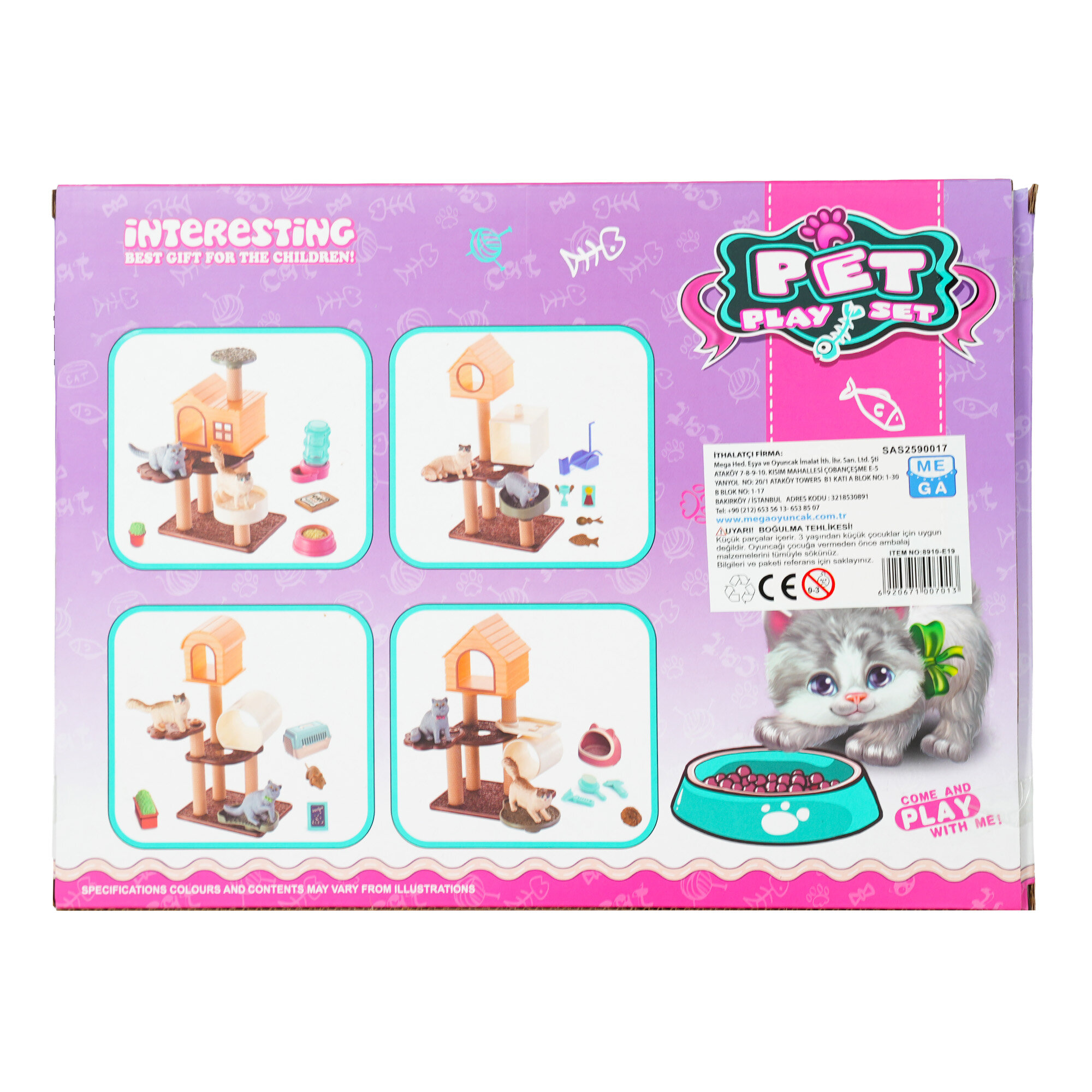 Evcil Hayvan Yavru Kedi Oyun Seti, çocuklara evcil hayvan sevgisini eğlenceli ve etkileşimli bir şekilde yaşatan mini figürlü bir oyun setidir.