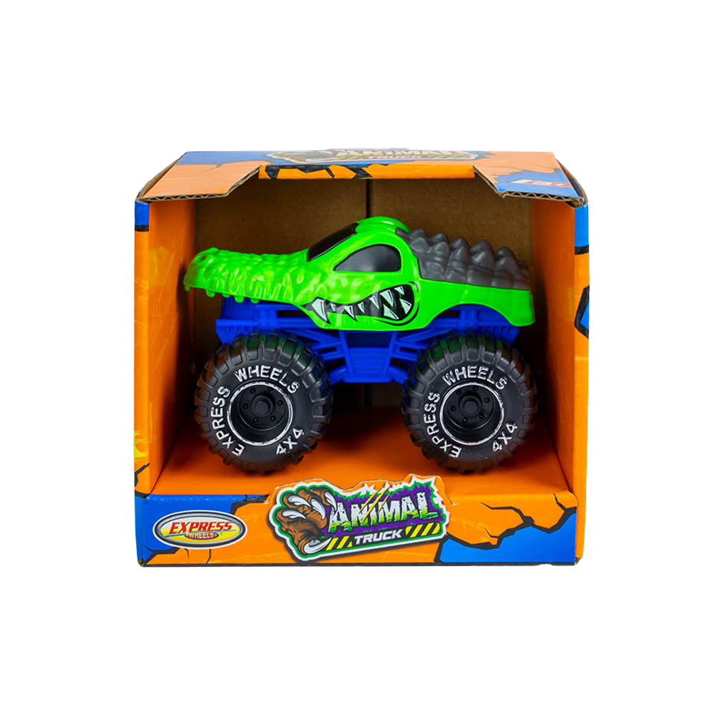 Express Wheels Animal Monster Truck, küçük arazi araçları ve macera yarışları hayranları için mükemmel bir settir.