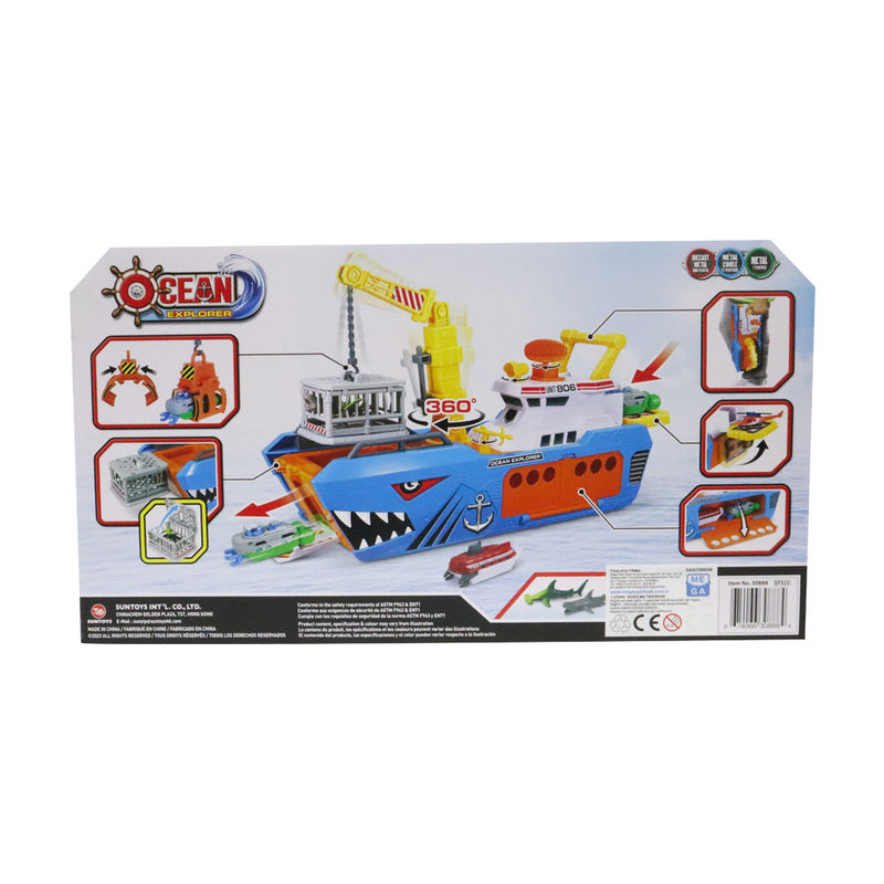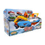 Arabalar için park yeri, helikopter pisti, spiral yol, araçları denize fırlatan tehlikeli tuzaklar, su püskürten denizaltı ve vahşi köpek balıklı tekne bu sette hepsi seni bekliyor.