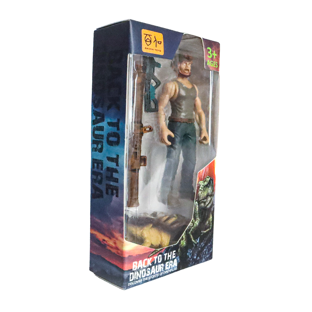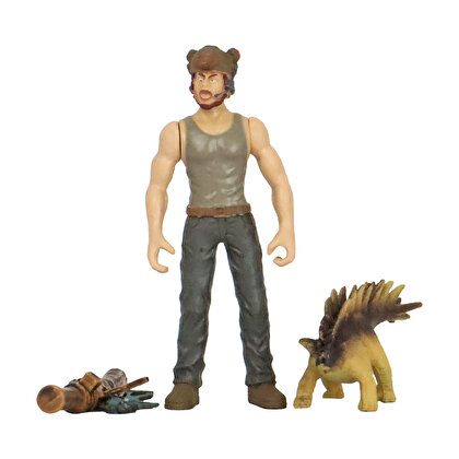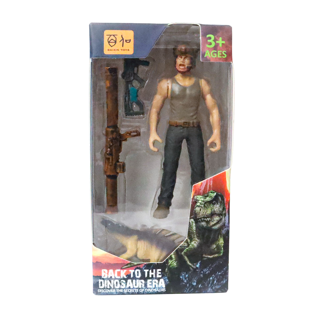 Bir asker,Dinozor ve silahla donatılmıştır.