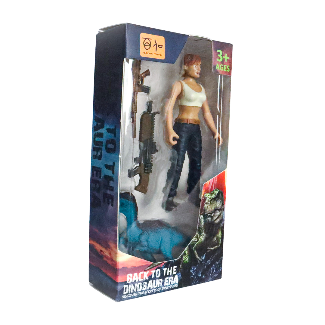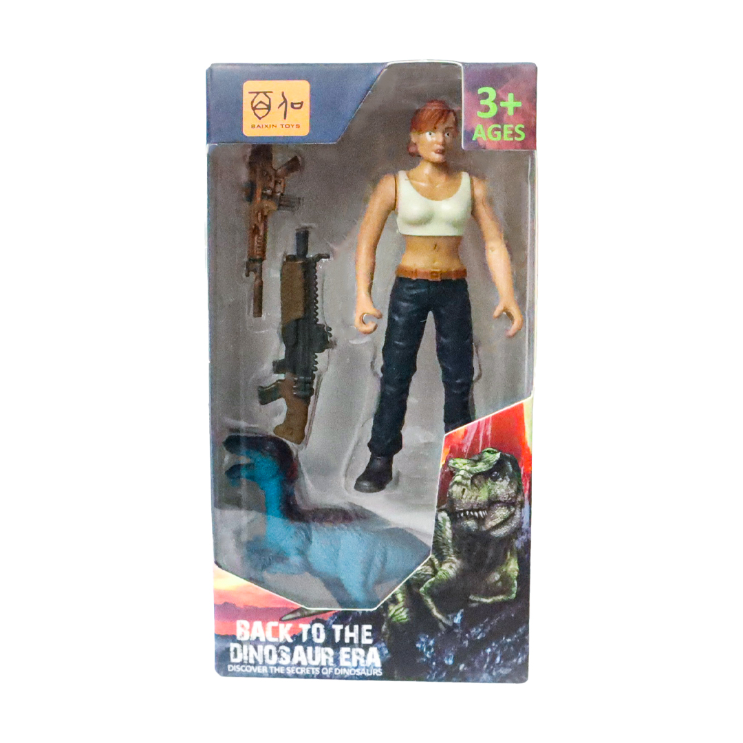 Bir asker,Dinozor ve silahla donatılmıştır.