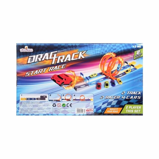 İki farklı kişinin yarışabileceği şekilde düzenlenmiş olan Drag Track fırlatıcılı yarış pisti; ilgi çekici detayları ve zengin içerikli parçalarıyla en güzel oyunlar için tasarlandı.