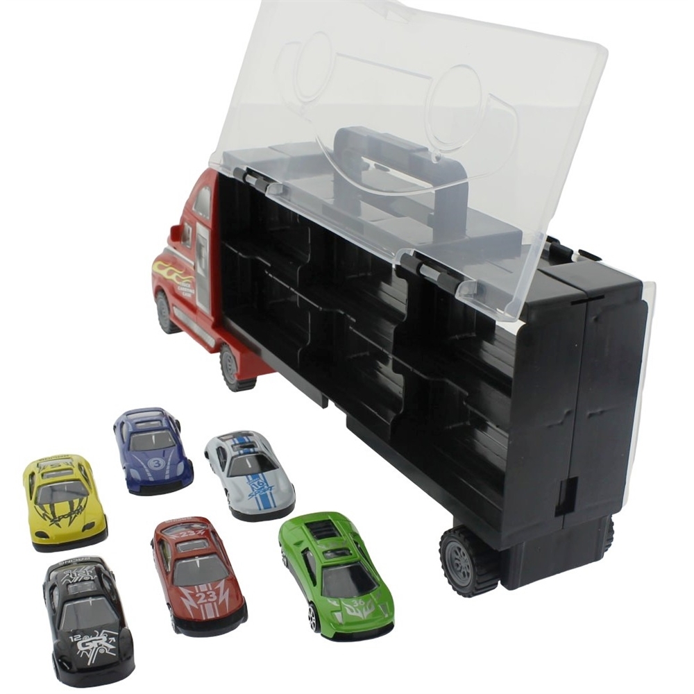 Çocuğunuz bu kamyonu üst kısmındaki aparat sayesinde, diğer araçları taşımak için bir taşıma çantası olarak kullanabilir ve oyun setini dilediği yere taşıyabilir.