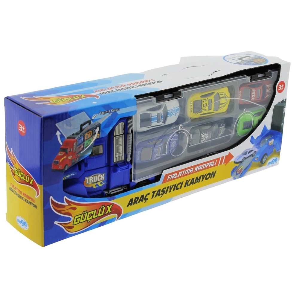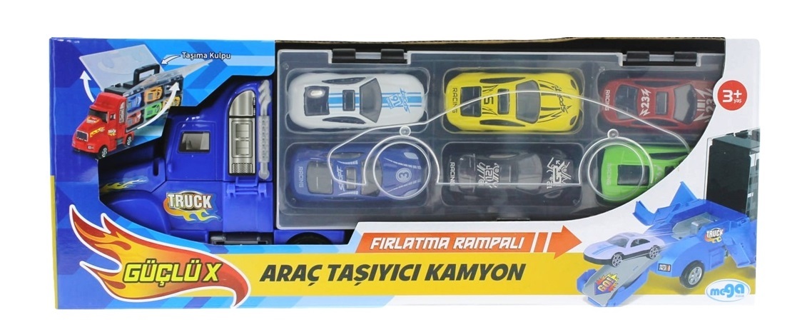 Çocuğunuz bu kamyonu üst kısmındaki aparat sayesinde, diğer araçları taşımak için bir taşıma çantası olarak kullanabilir ve oyun setini dilediği yere taşıyabilir.