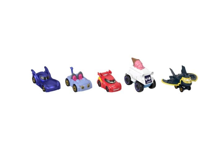 Bu araç setinde orijinal Batwheels tarzı, Batcast Metal malzemeler ve hareketli tekerlekleriyle 1:55 ölçekli 5 dizi karakteri bulunuyor.