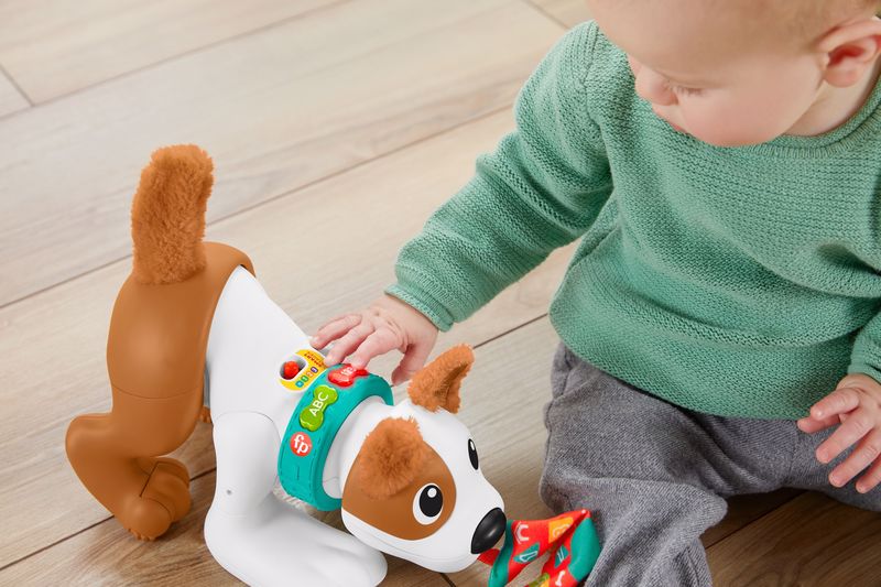Öğreten Köpekçik tıpkı gerçek yavru köpekler gibi oyun oynamaya bayılıyor.