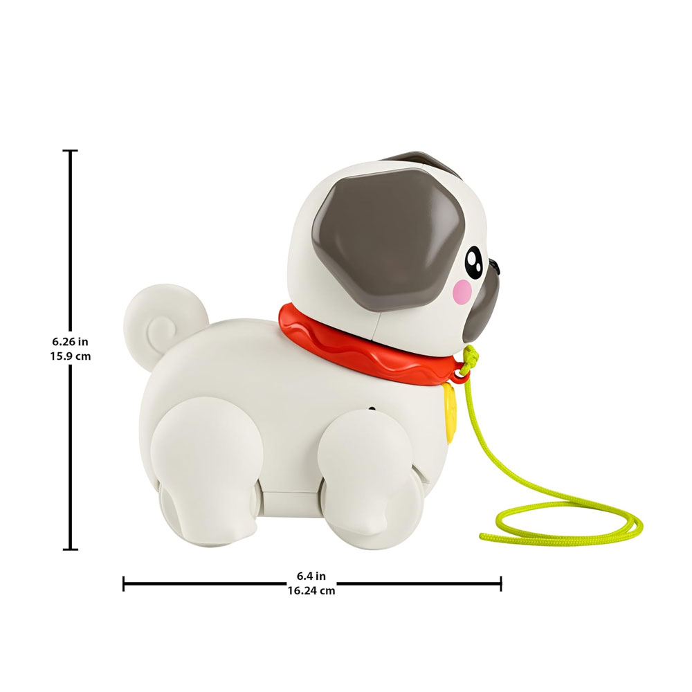 Çocuklar, bu sevimli çekçekli köpeği kendi başlarına yürüyüşe çıkarabilir. Tasması çekilince bacaklarını ve kulaklarını hareket ettirip sevimli bir havlama sesi çıkaran bu köpek, minikleri yürümeye ve kaba motor becerilerini geliştirmeye teşvik eder.