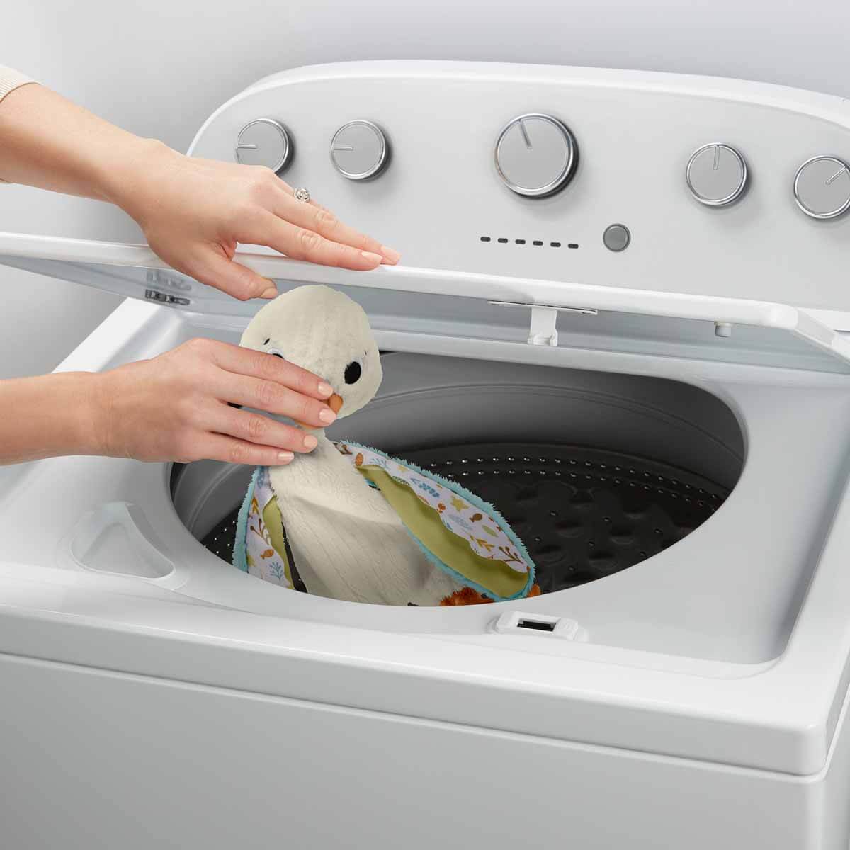 Peluş kaz, hem yeni doğanların duyusal gelişimine yardımcı olmak hem de küçük parmakların kolayca keşfetmesi için çok dokulu kumaş kanatlara sahiptir. Bebek, kazı her salladığında yumuşak sesler çalar. Ayrıca çok sevimlidir!